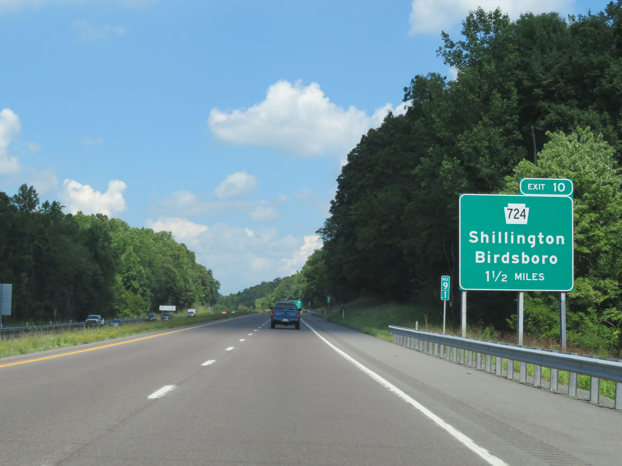 Interstate 176 North at Exit 10: PA 724 - Shillington / Birdsboro (Photo taken 8/19/16). |