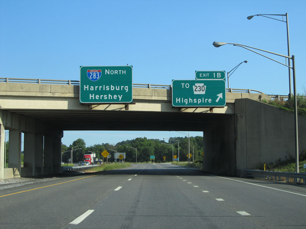 Interstate 283 North at Exit 1B: To PA 230 - Highspire (Photo taken 8/7/15).