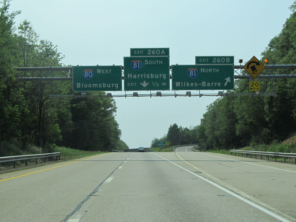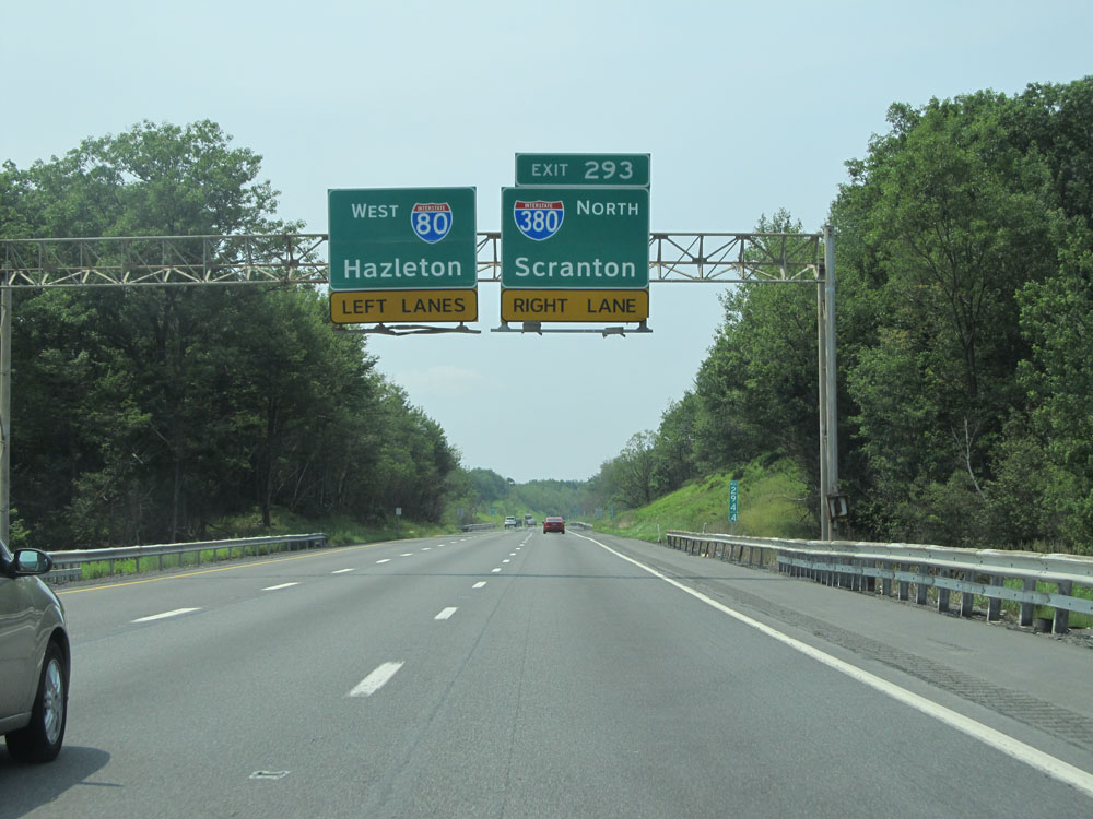 Interstate 80 West at Exit 256: PA 93 - Conyngham / Nescopeck (Photo taken 7/5/15).