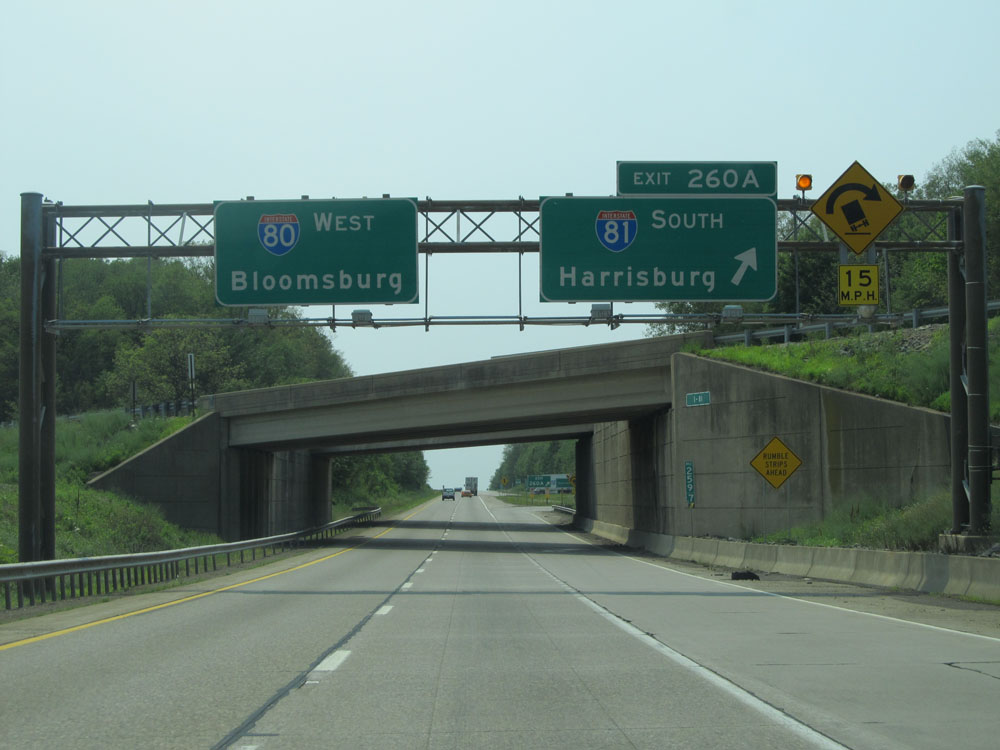 Interstate 80 West at Exit 210A: US 15 South - Lewisburg (Photo taken 7/5/15).