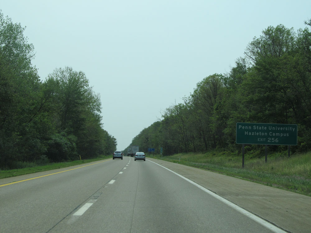 Take Exit 256 to Penn State University Hazleton Campus. (Photo taken 7/5/15).