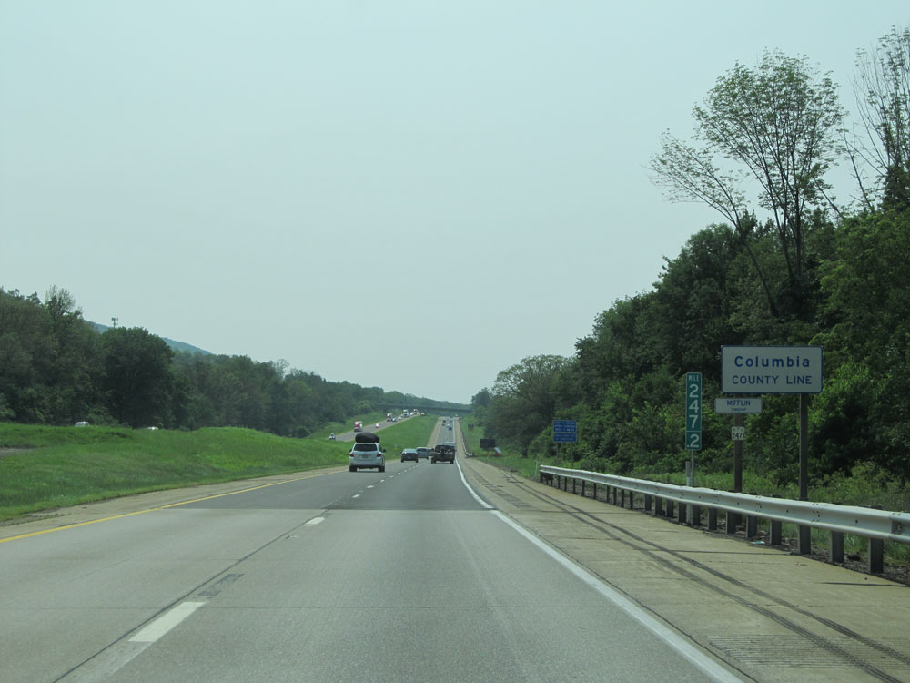 Interstate 80 West entering Columbia County at mile marker 247.2. (Photo taken 7/5/15).