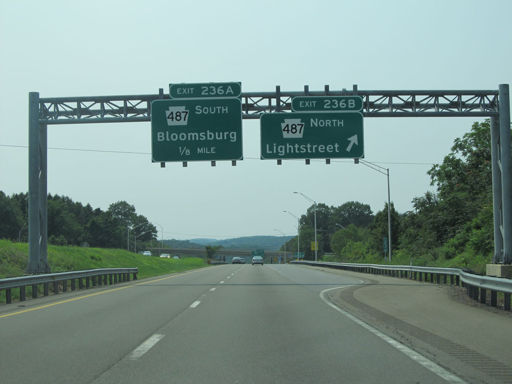 Interstate 80 West at Exit 236B: PA 487 North - Lightstreet (Photo taken 7/5/15).