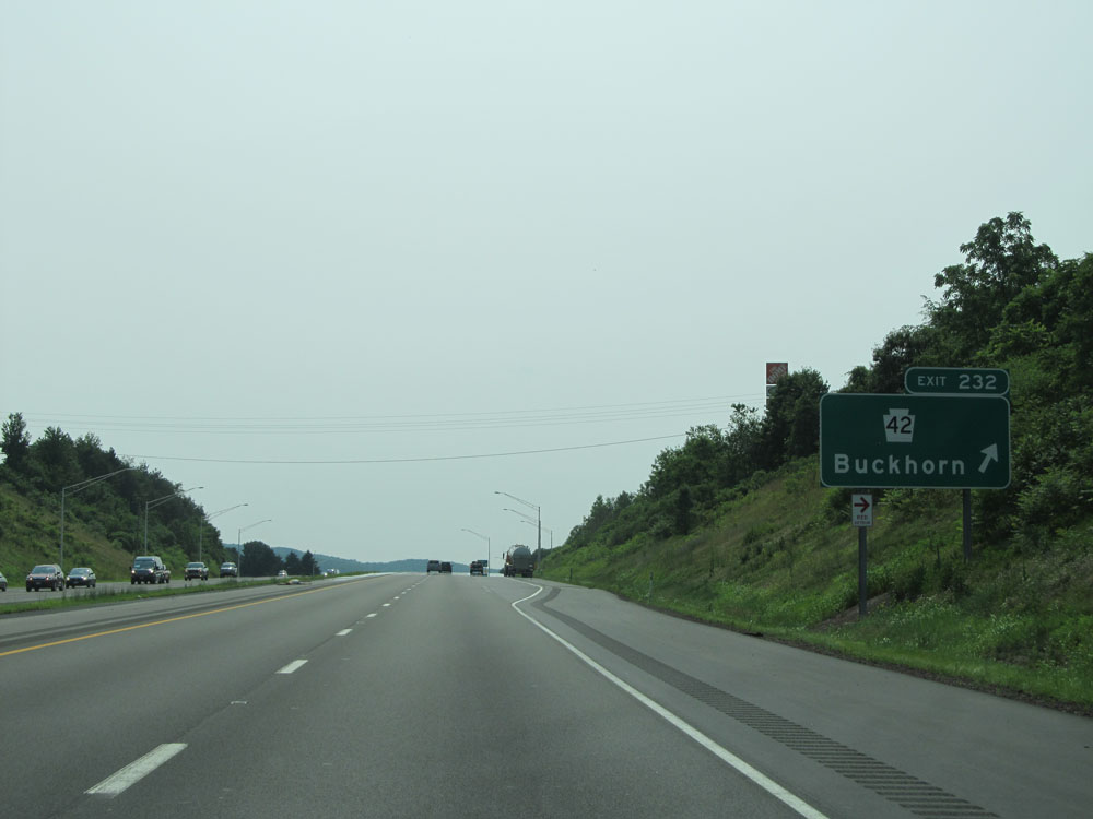 Interstate 80 West at Exit 232: PA 42 - Buckhorn (Photo taken 7/5/15).