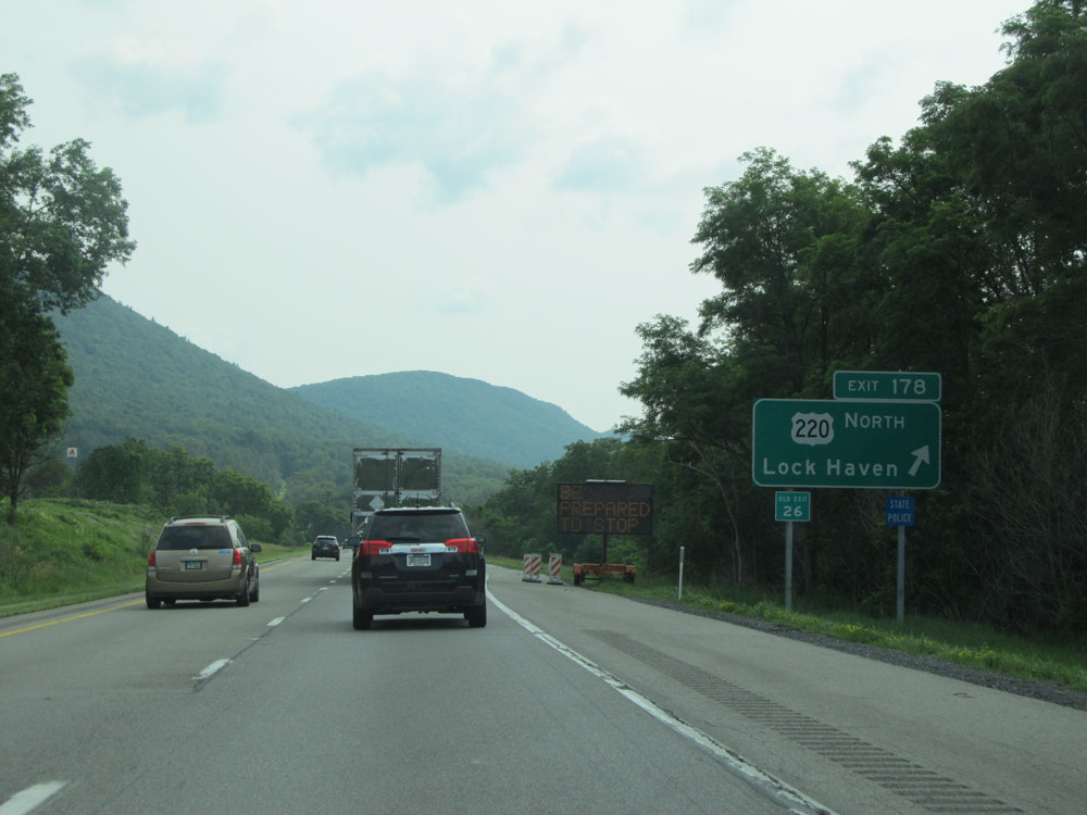 Interstate 80 West at Exit 178: US 220 North - Lock Haven (Photo taken 7/5/15).