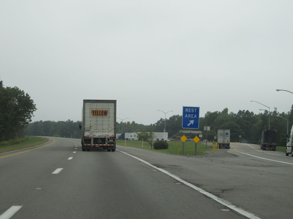 When the lights on this sign are flashing, all trucks must enter the Weigh Station located at the Rest Area ahead. (Photo taken 7/5/15).