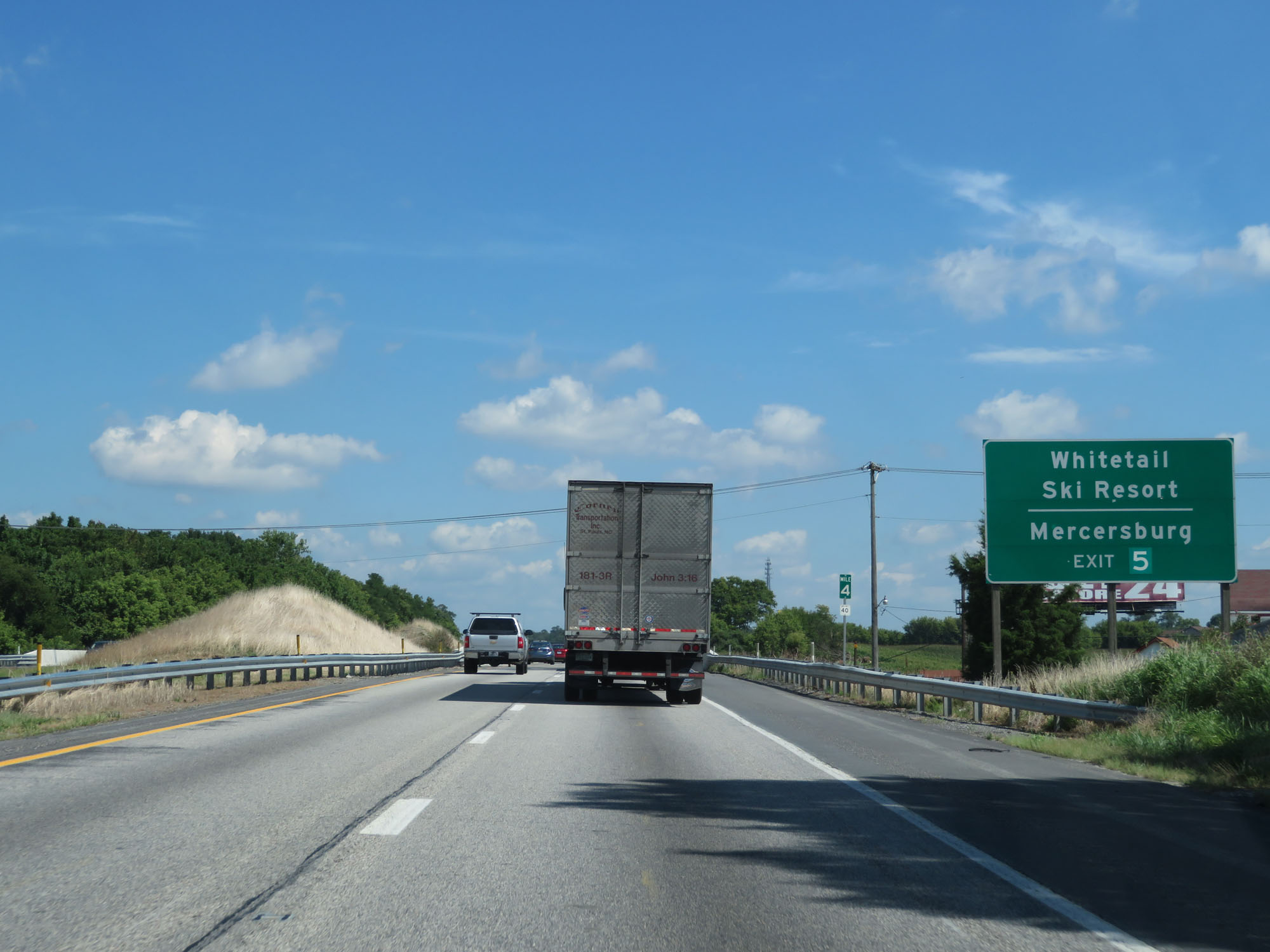 Take Exit 5 to Whitetail Ski Resort and Mercersburg. (Photo taken 8/19/16). |