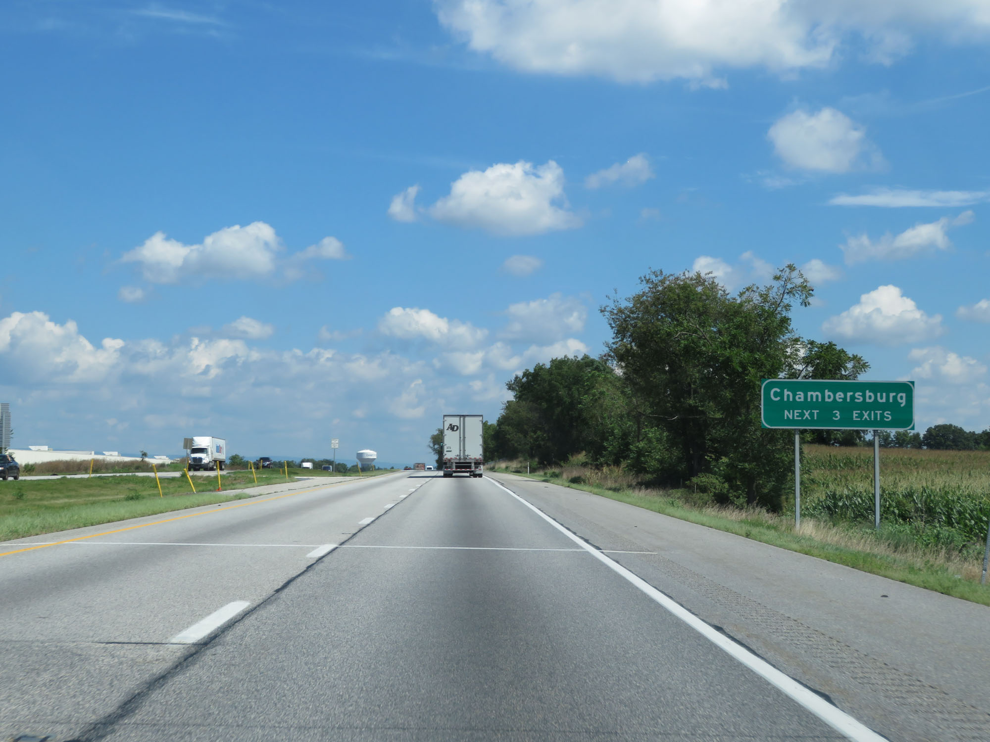 Take any of the next 3 exits to Chambersburg. (Photo taken 8/19/16). |
