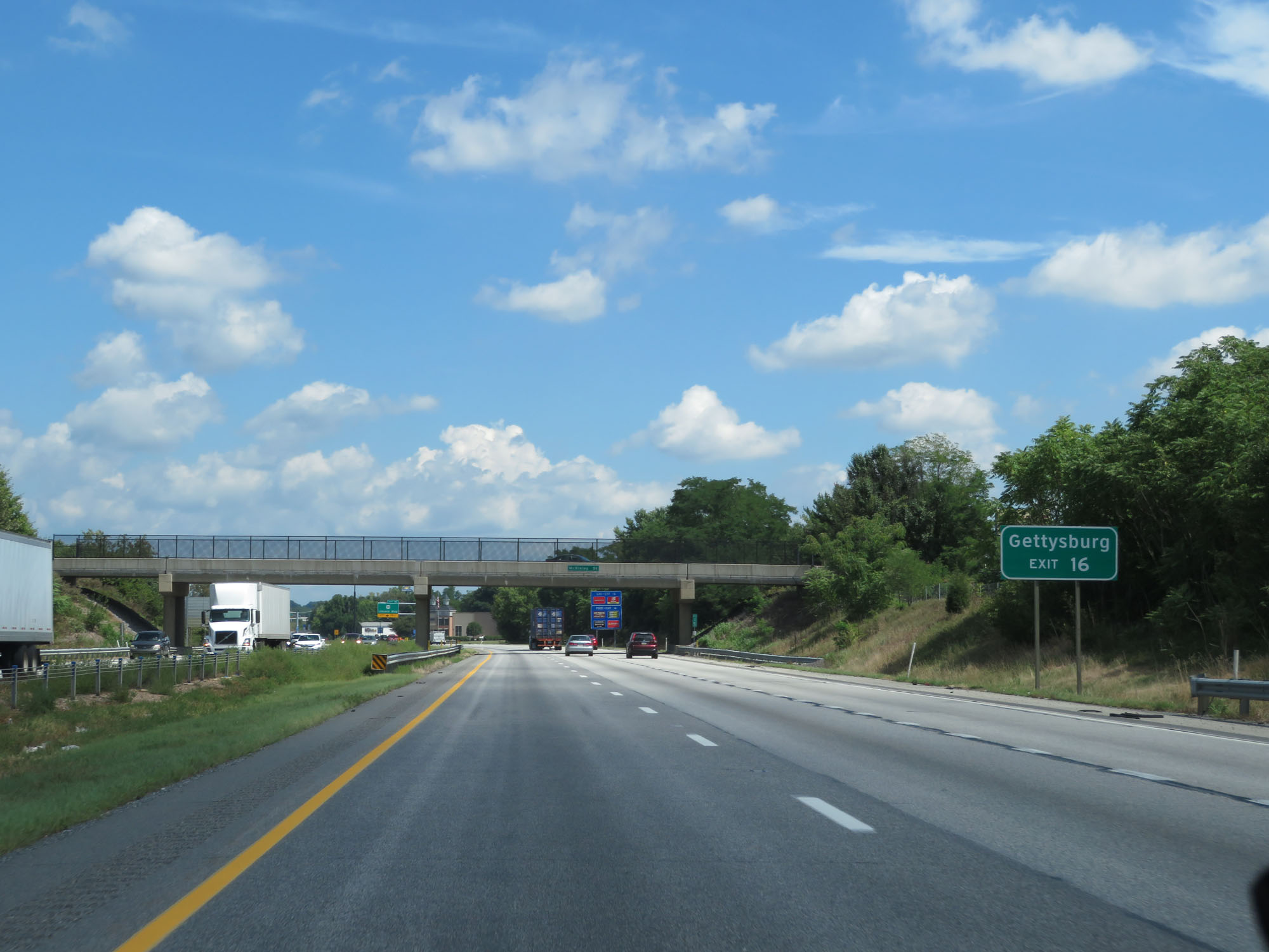 Take Exit 16 to Gettysburg. (Photo taken 8/19/16). |