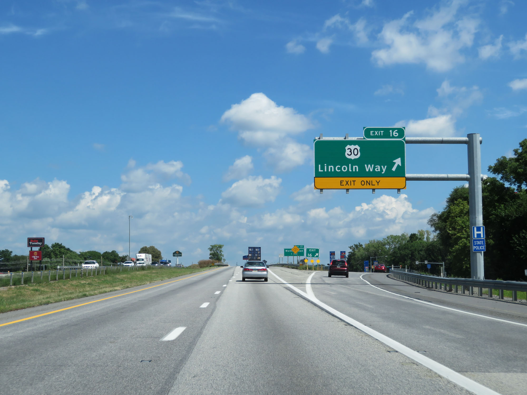 Interstate 81 North at Exit 16: US 30 - Lincoln Way (Photo taken 8/19/16). |