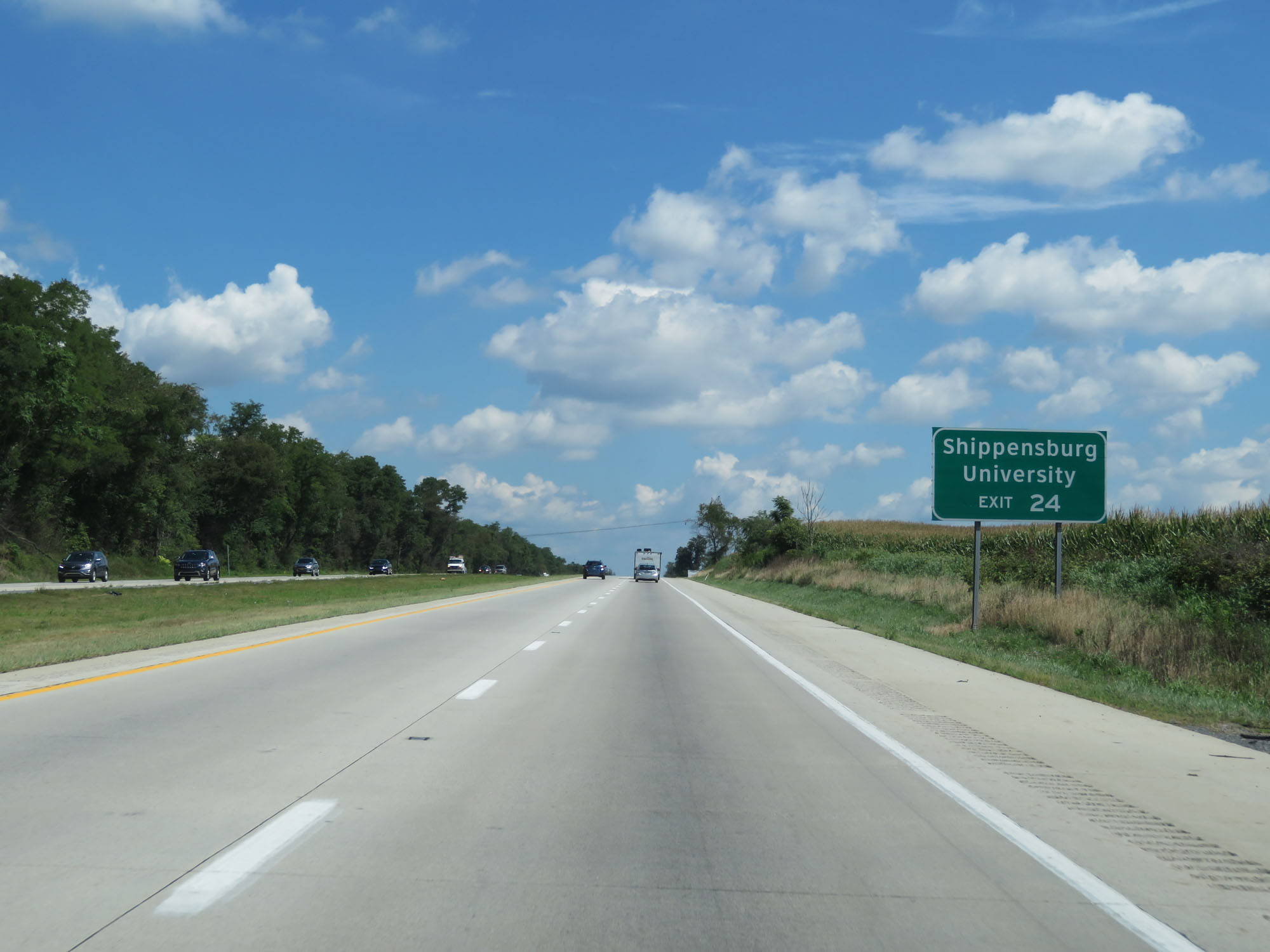 Take Exit 24 to Shippensburg University. (Photo taken 8/19/16). |