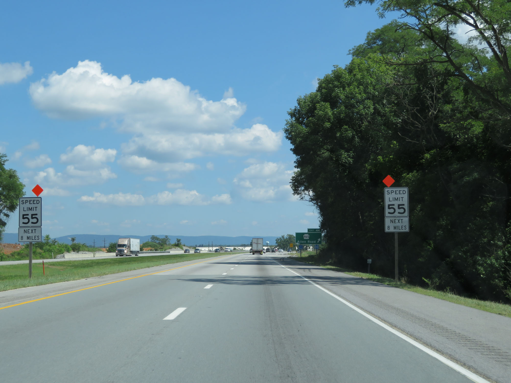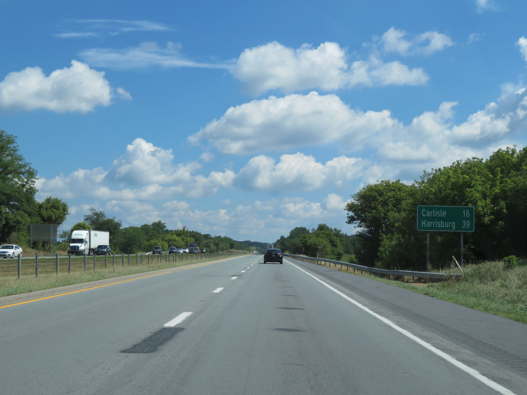 Nearing the Carlisle area, the speed limit decreases to 55 mph for the next 8 miles. (Photo taken 8/19/16). |