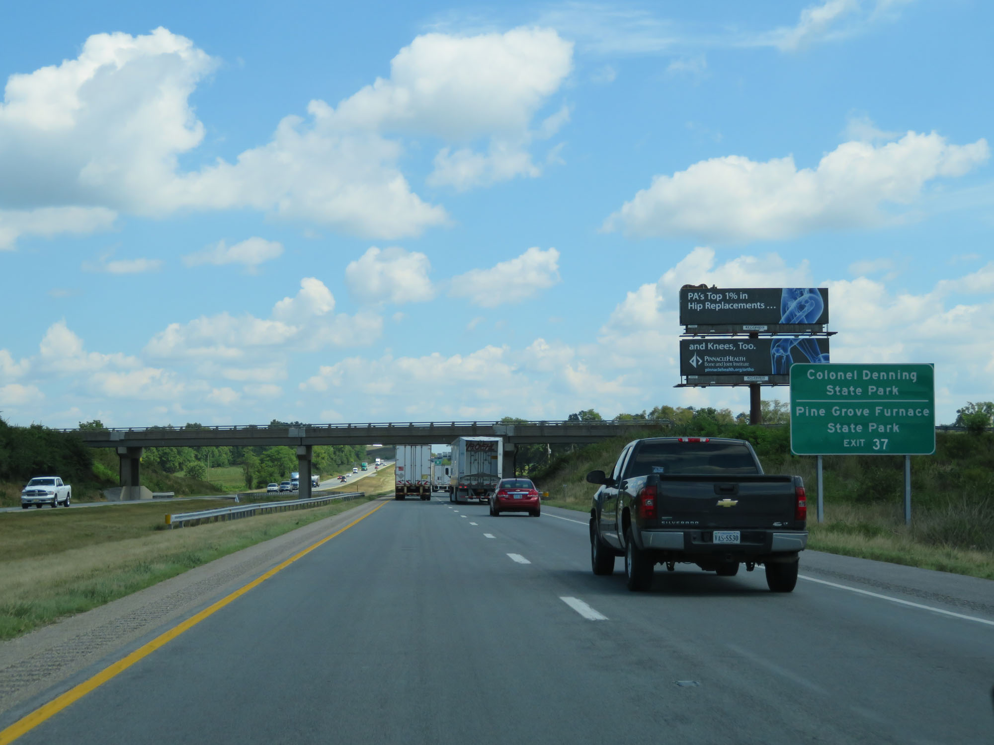 Take Exit 37 to Colonel Denning State Park and Pine Grove Furnace State Park. (Photo taken 8/19/16). |