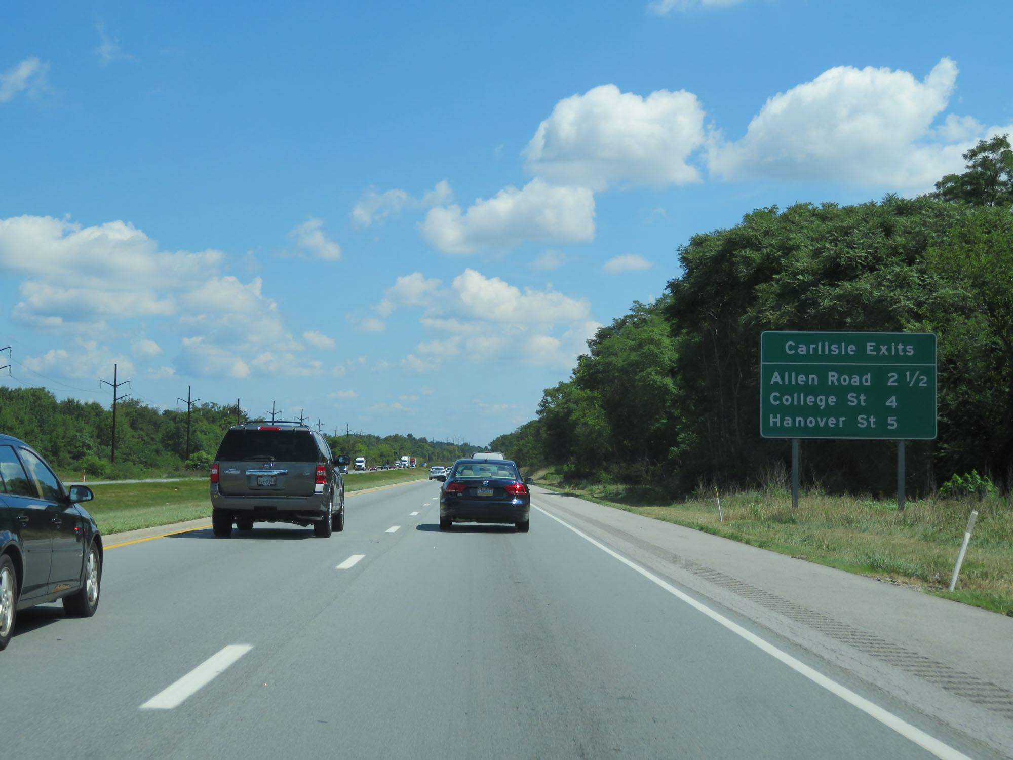 Take Exit 47 to Dickinson College and Mt Holly Springs. (Photo taken 8/19/16). |