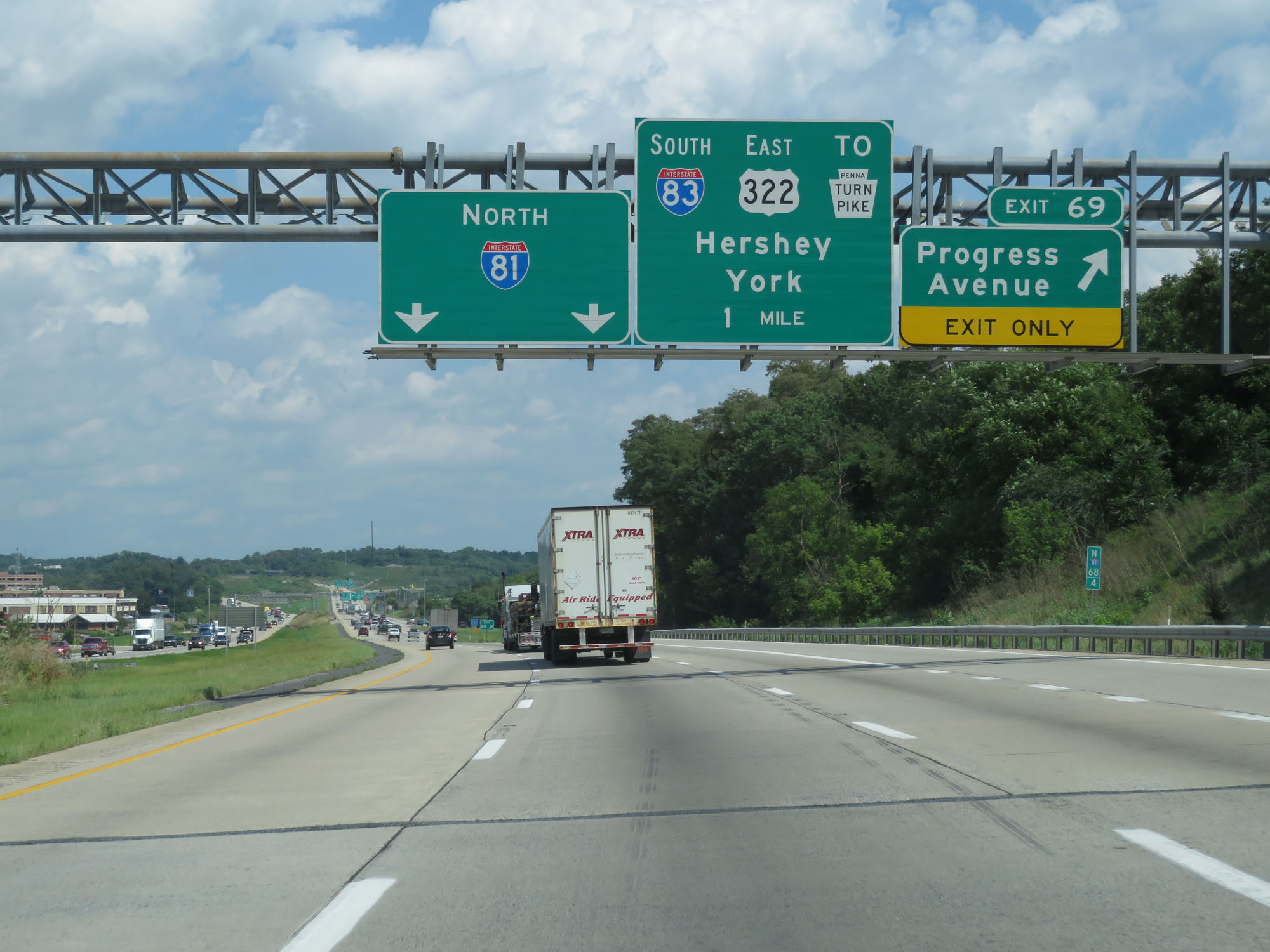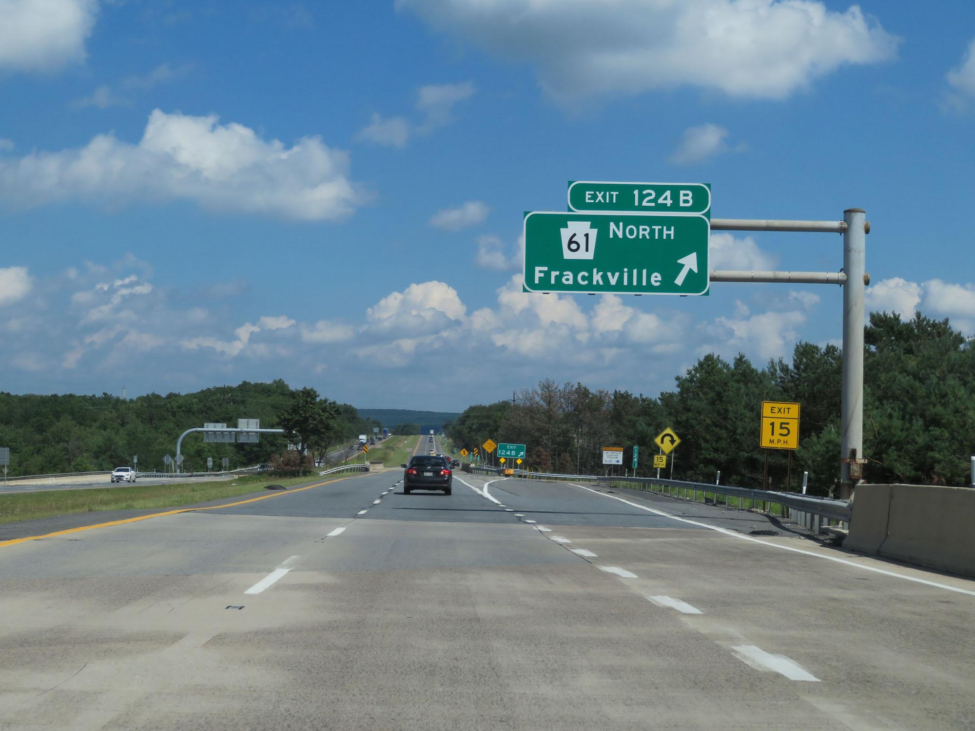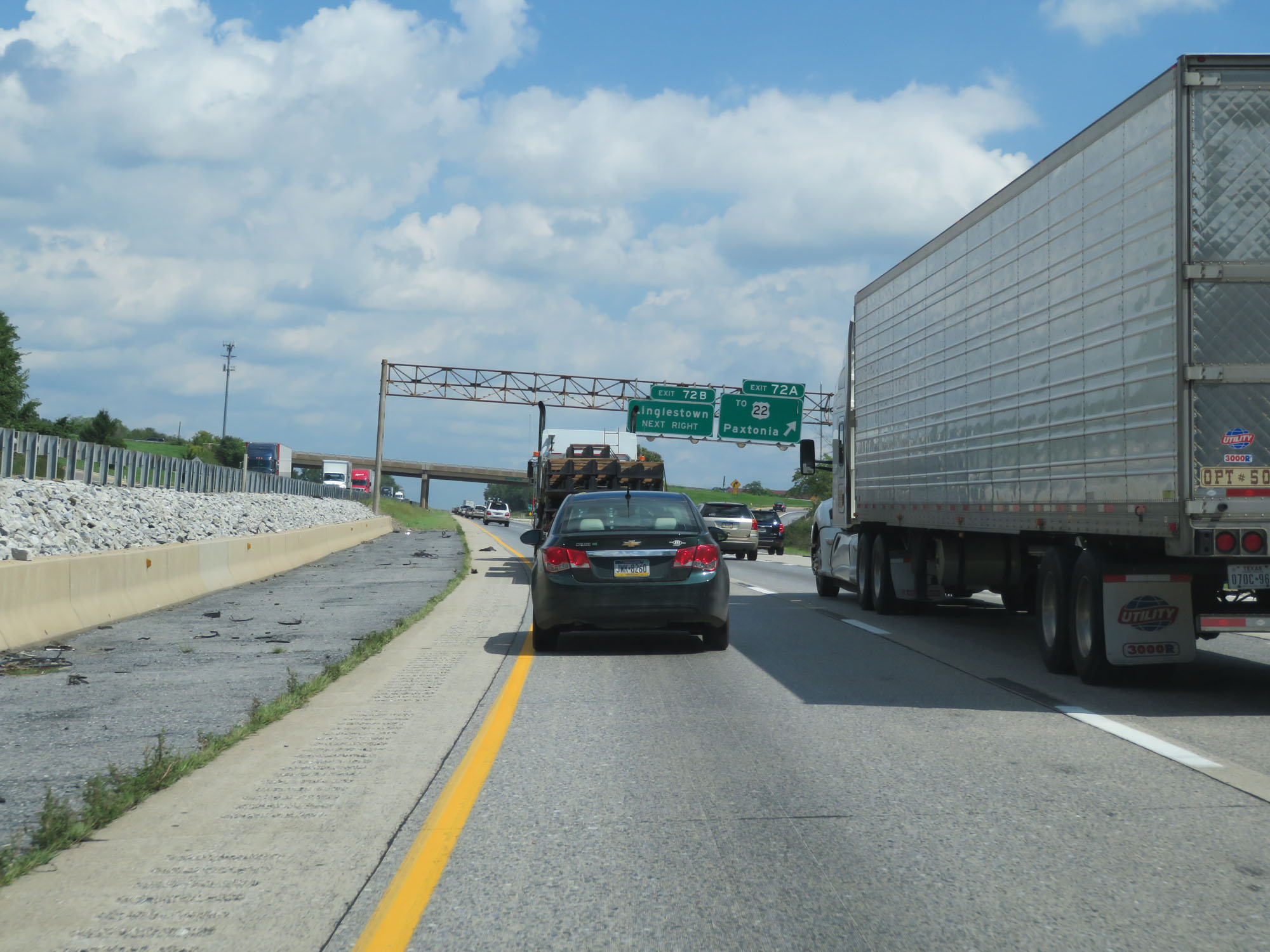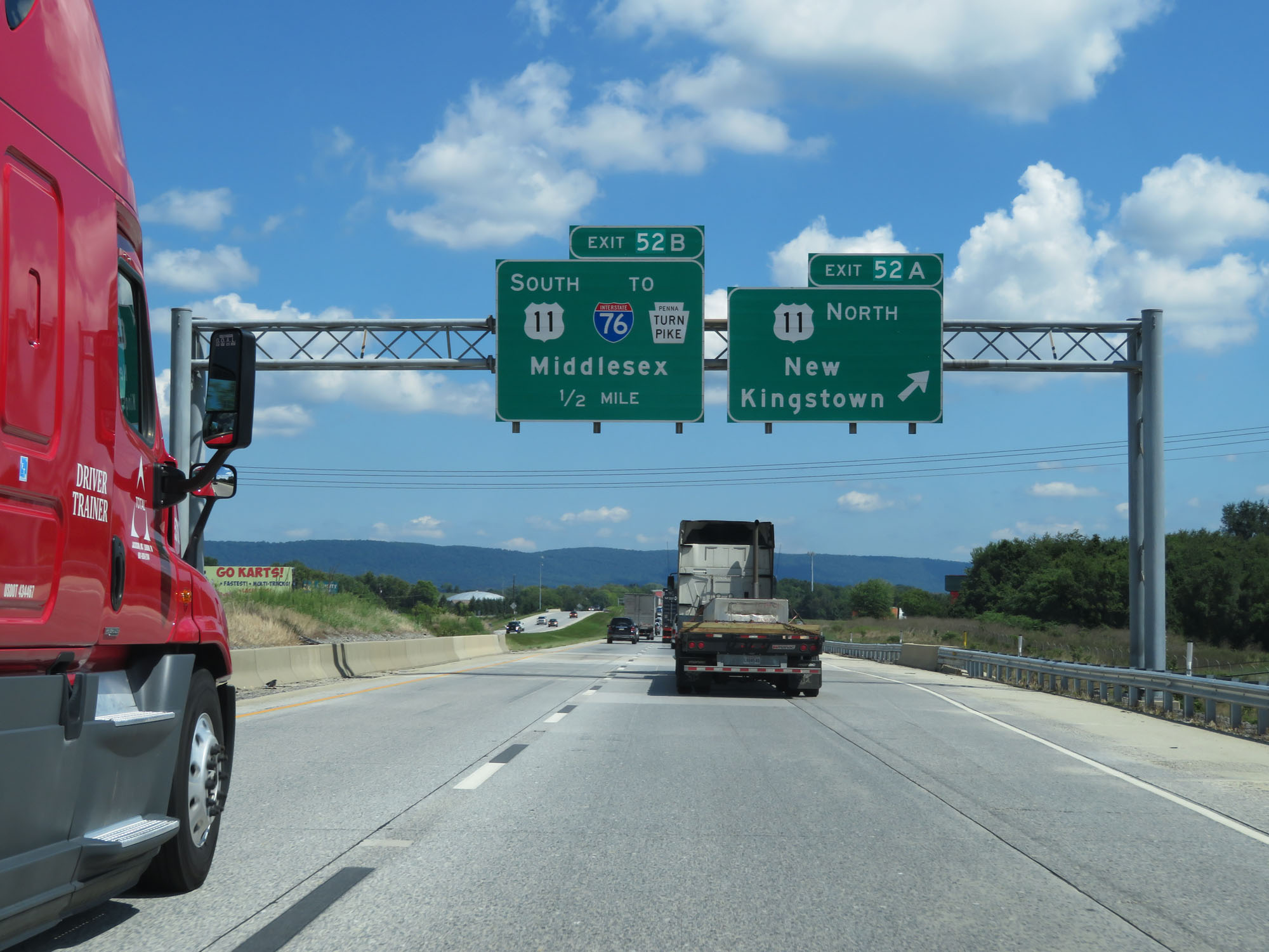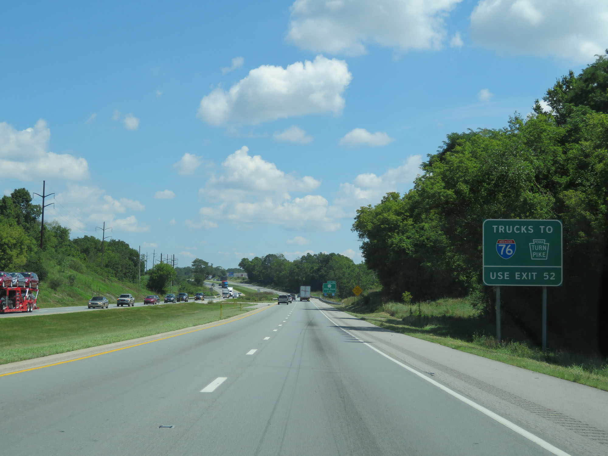 Trucks to Interstate 76 (PA Turnpike) should use Exit 52. (Photo taken 8/19/16). |