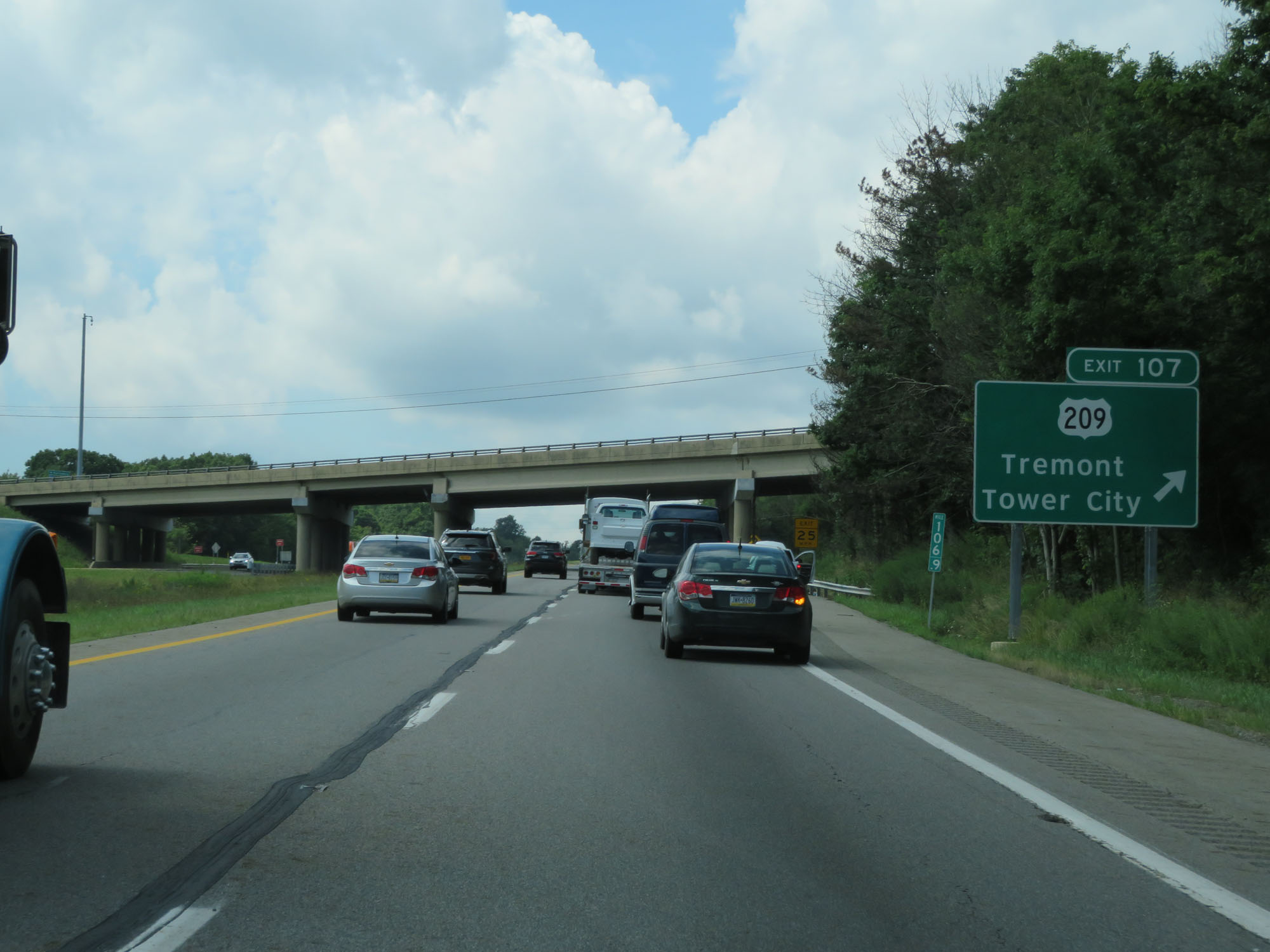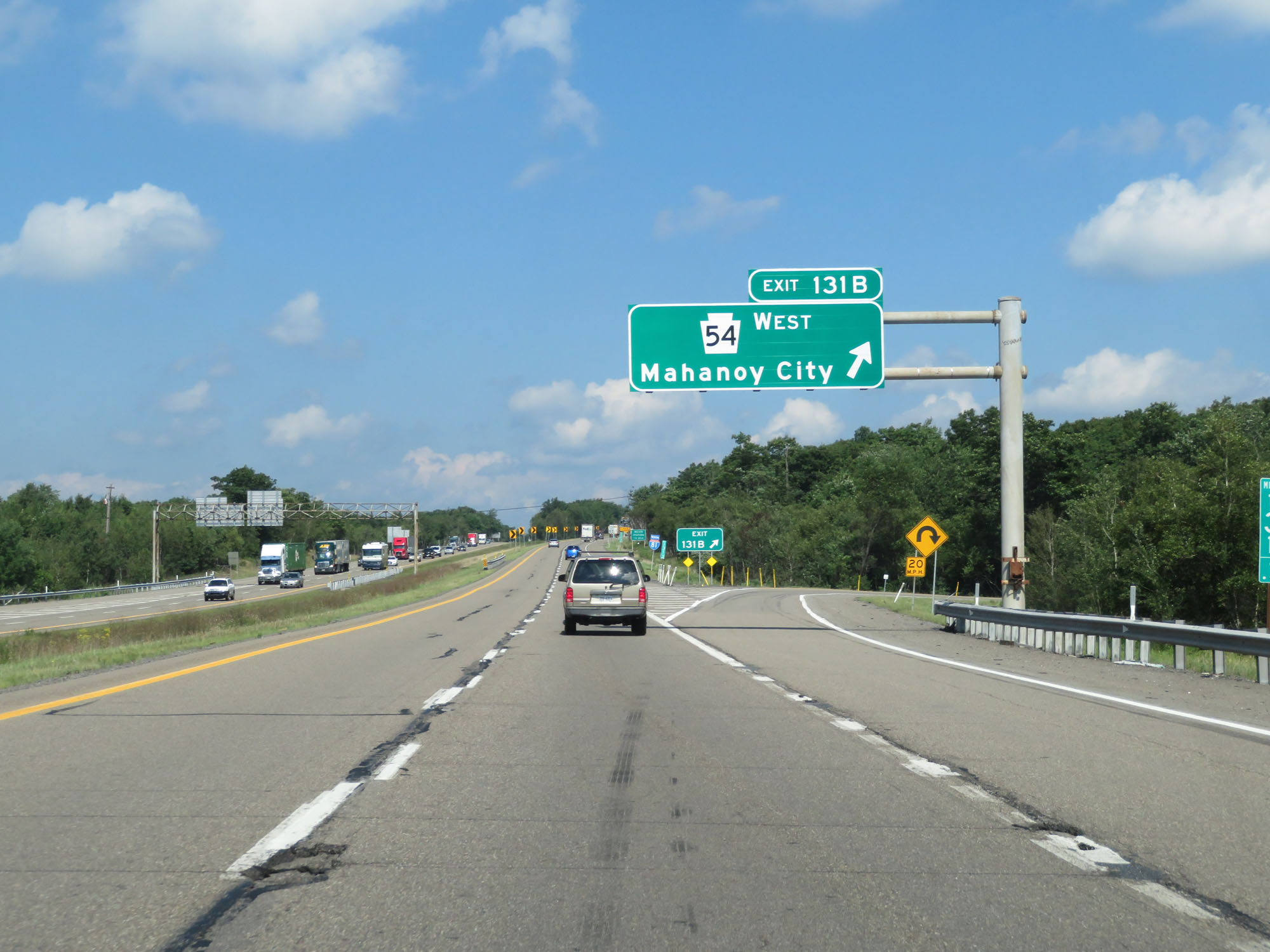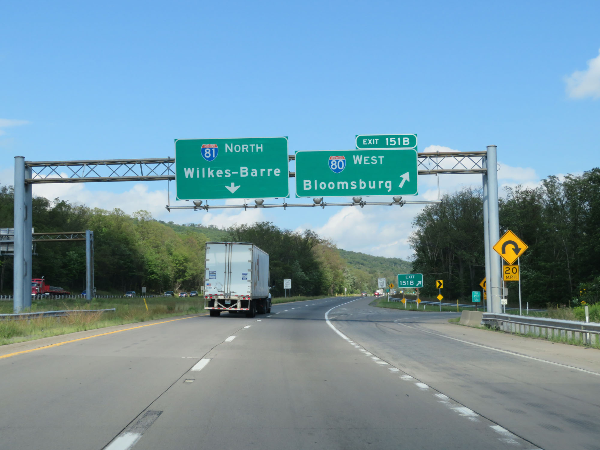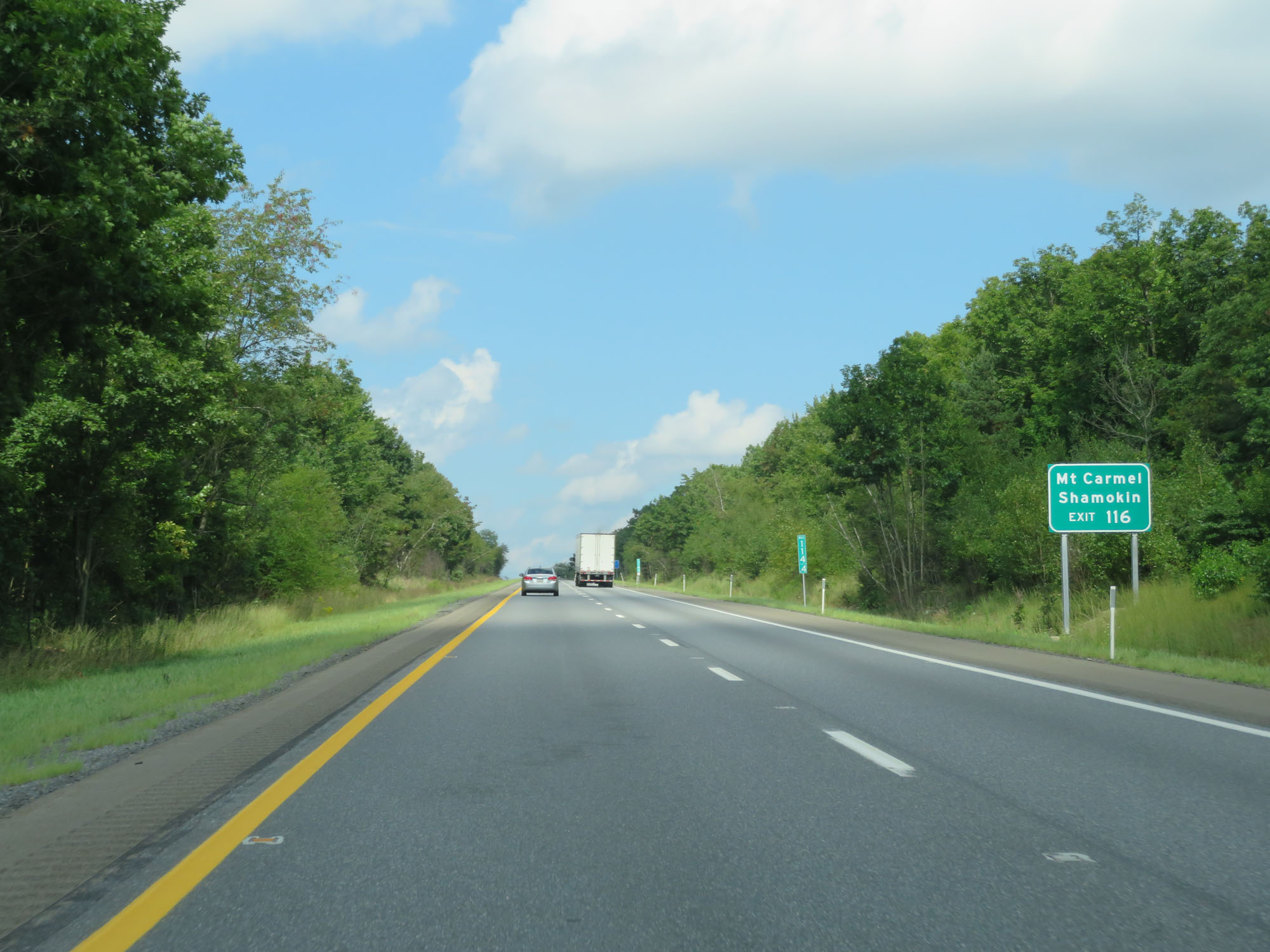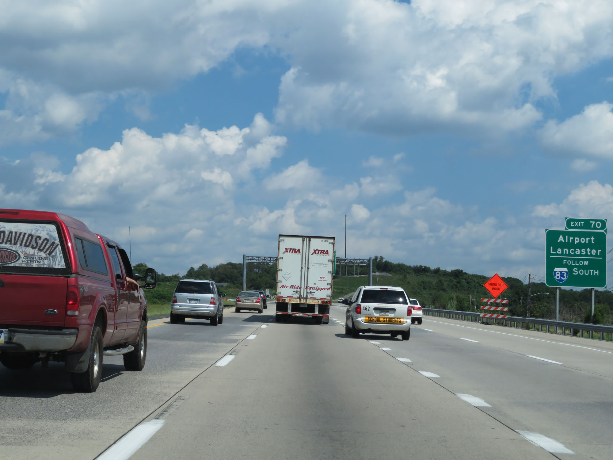 Trucks to Interstate 76 (PA Turnpike) should use Exit 52. (Photo taken 8/19/16). |