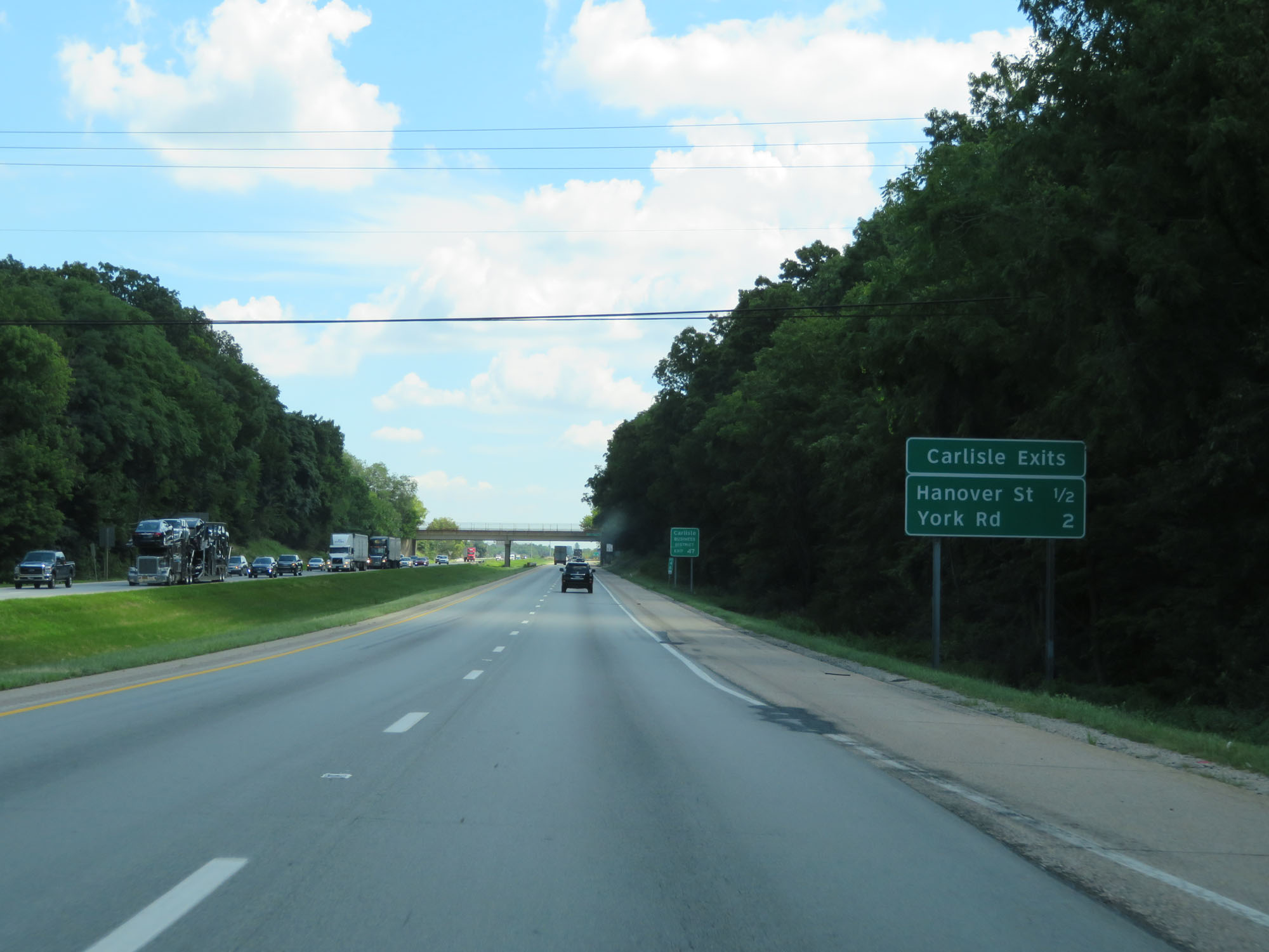 This sign lists the distances to the two remaining Carlisle exits. (Photo taken 8/19/16). |