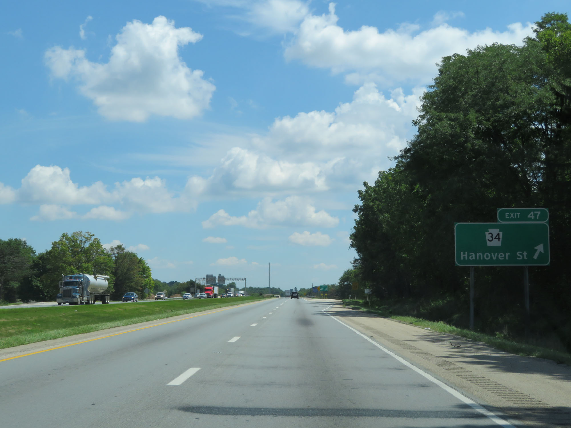 Interstate 81 North at Exit 47: PA 34 - Hanover St (Photo taken 8/19/16). |