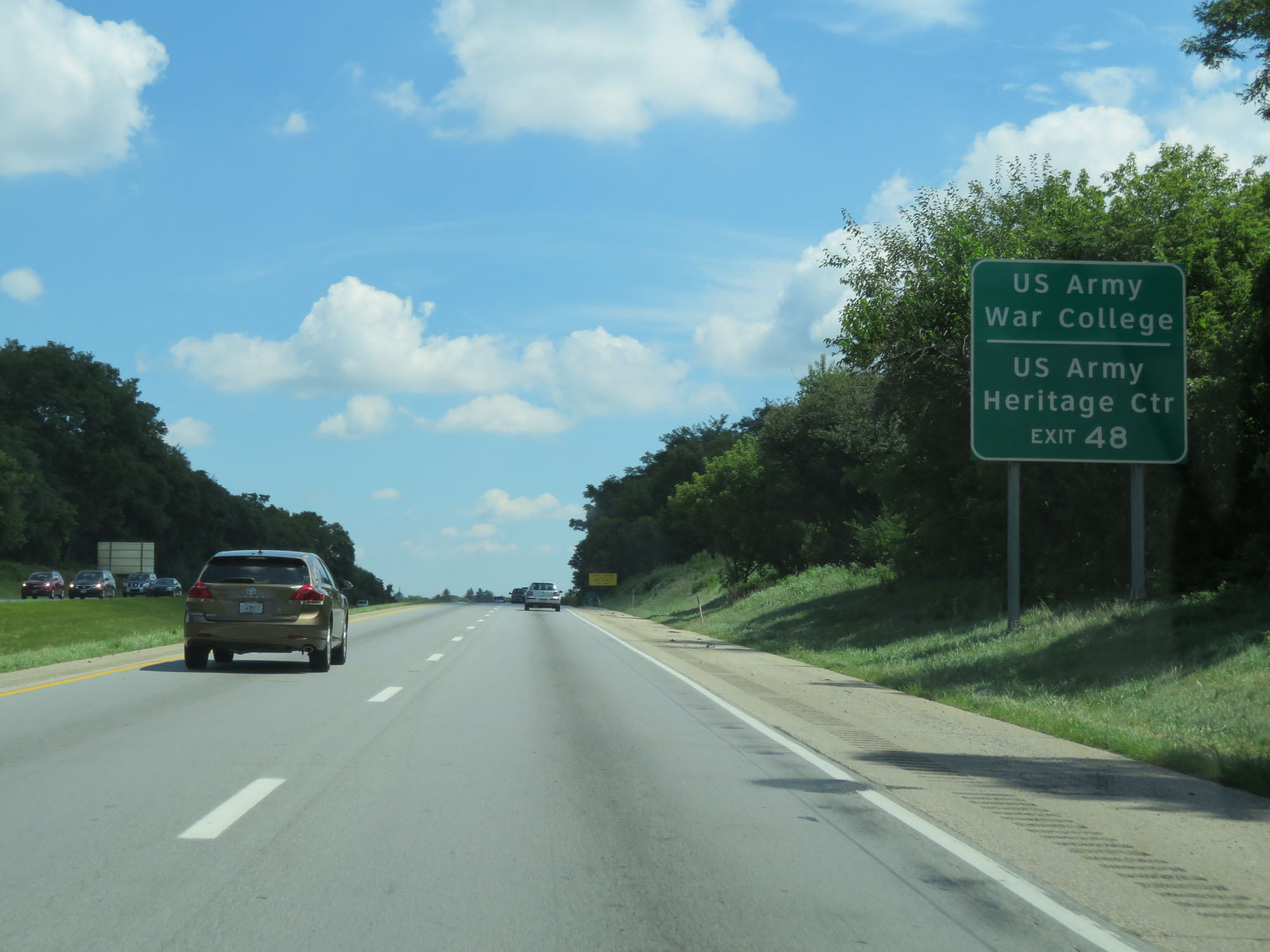 Take Exit 48 to US Army War College and US Army Heritage Center. (Photo taken 8/19/16). |