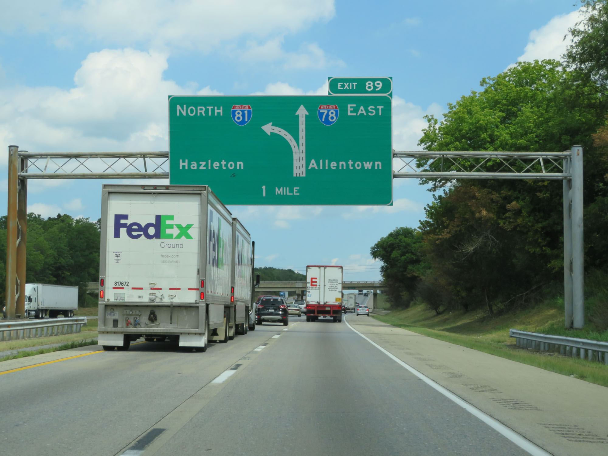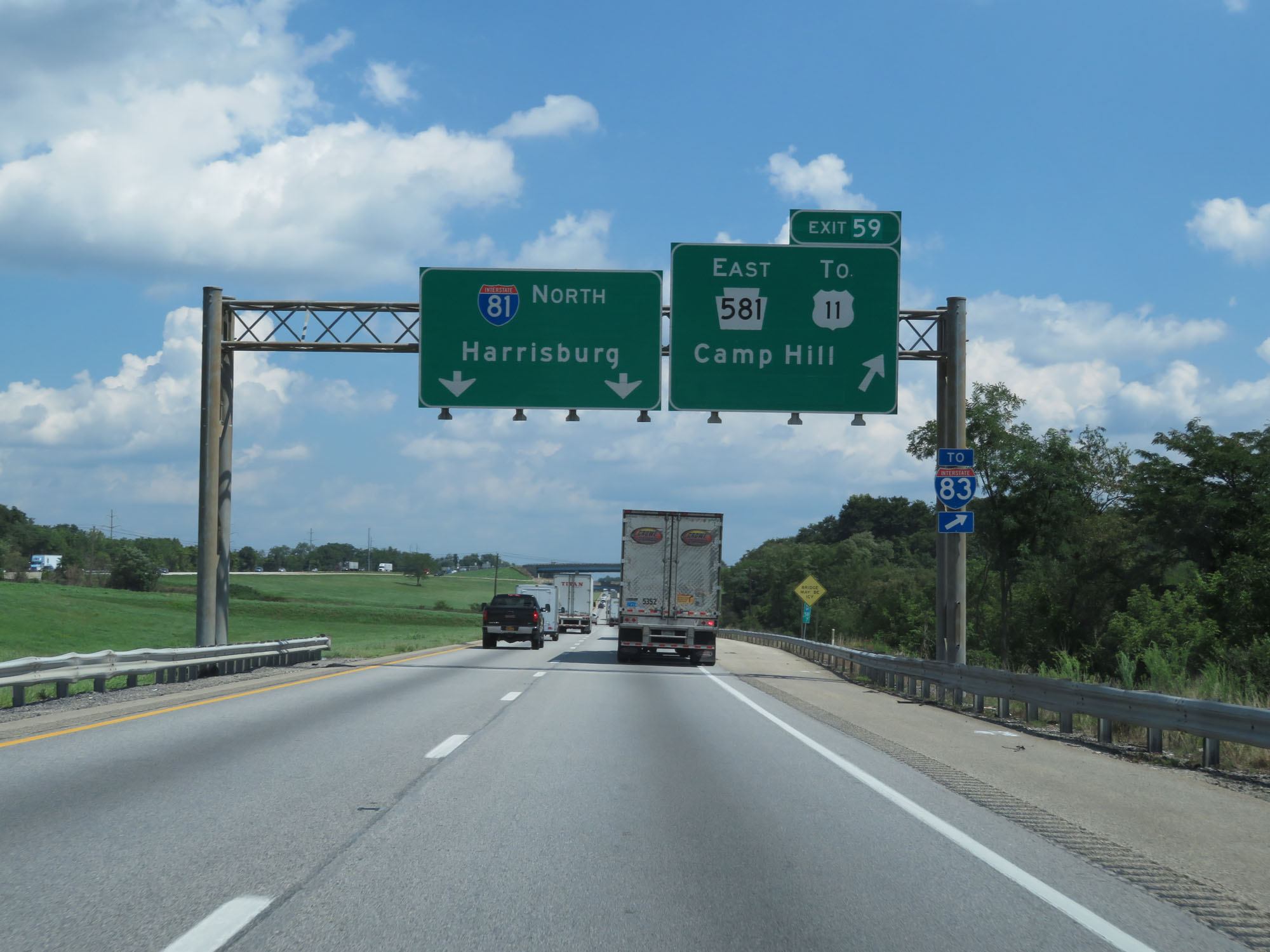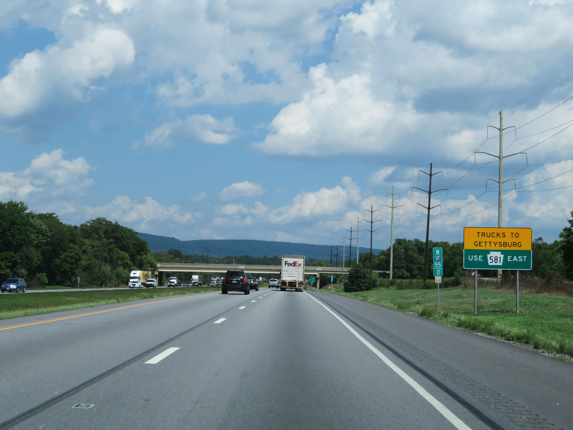 Interstate 81 North as it enters the Keystone State from Maryland. (Photo taken 8/19/16). |
