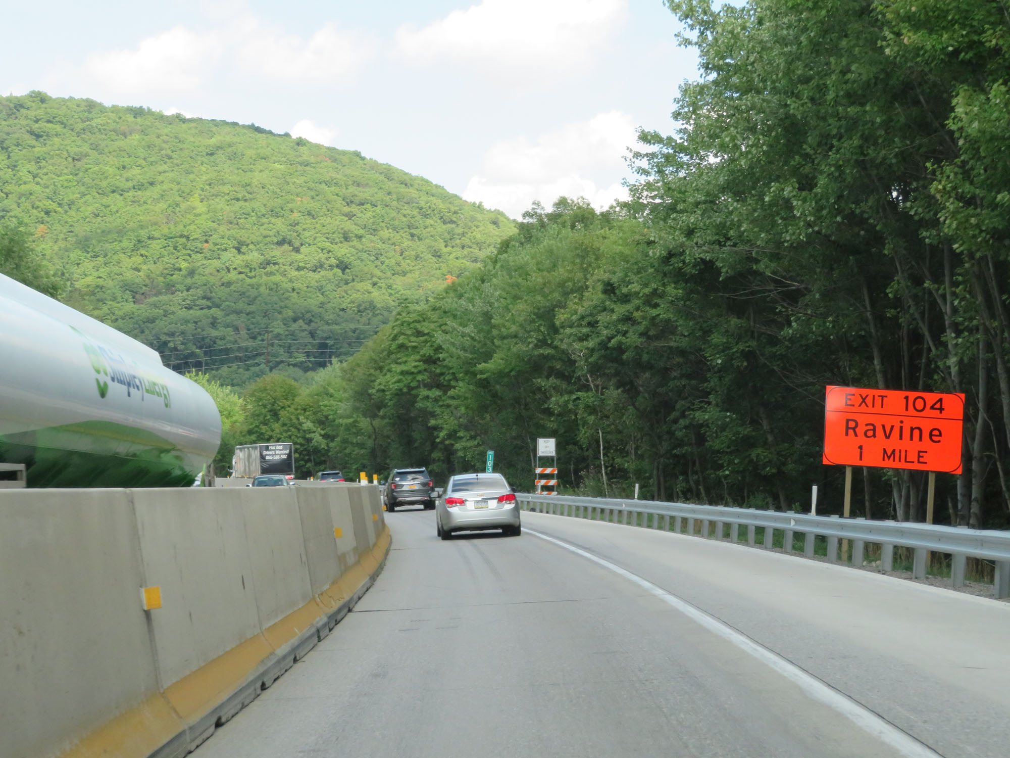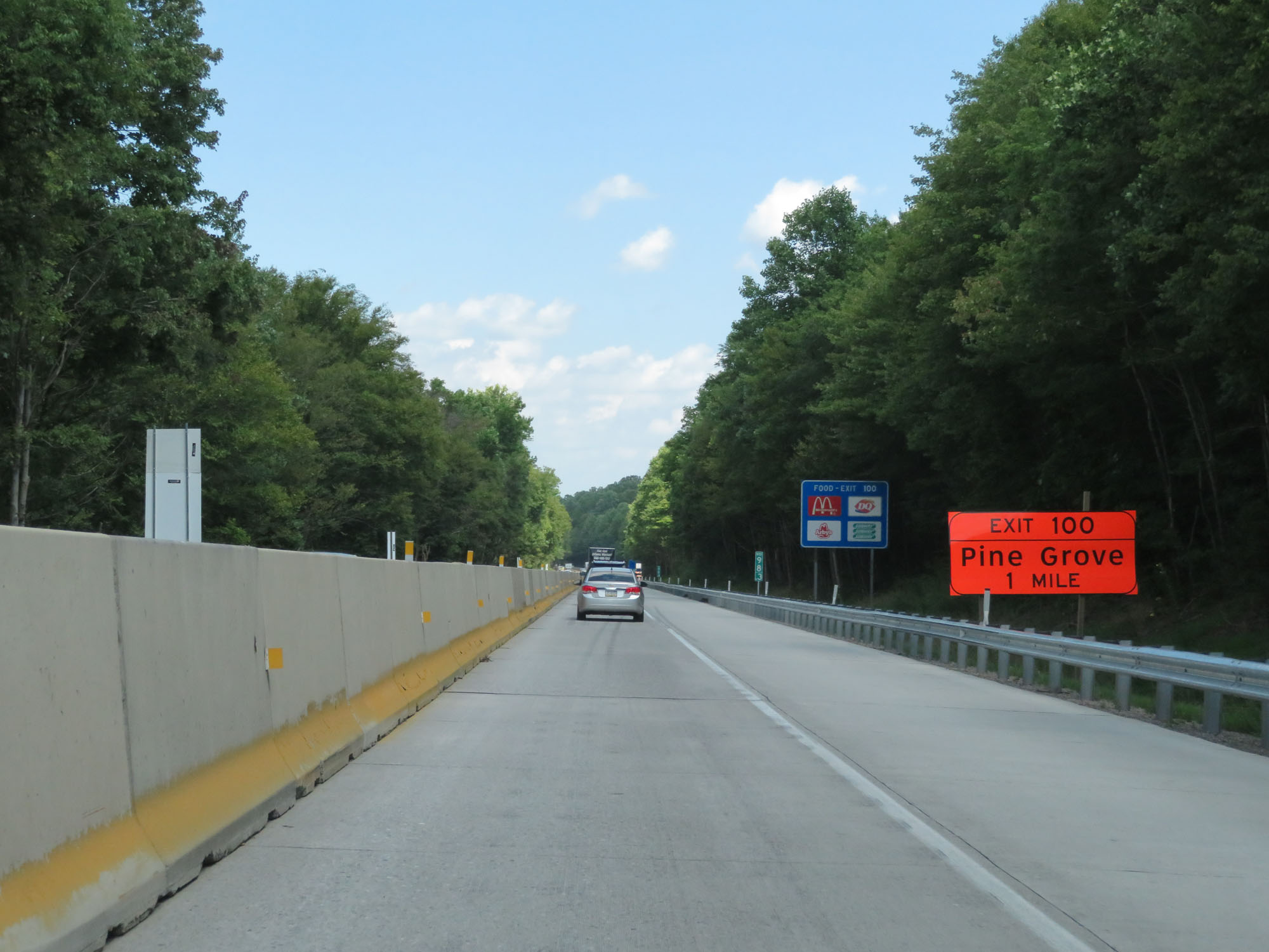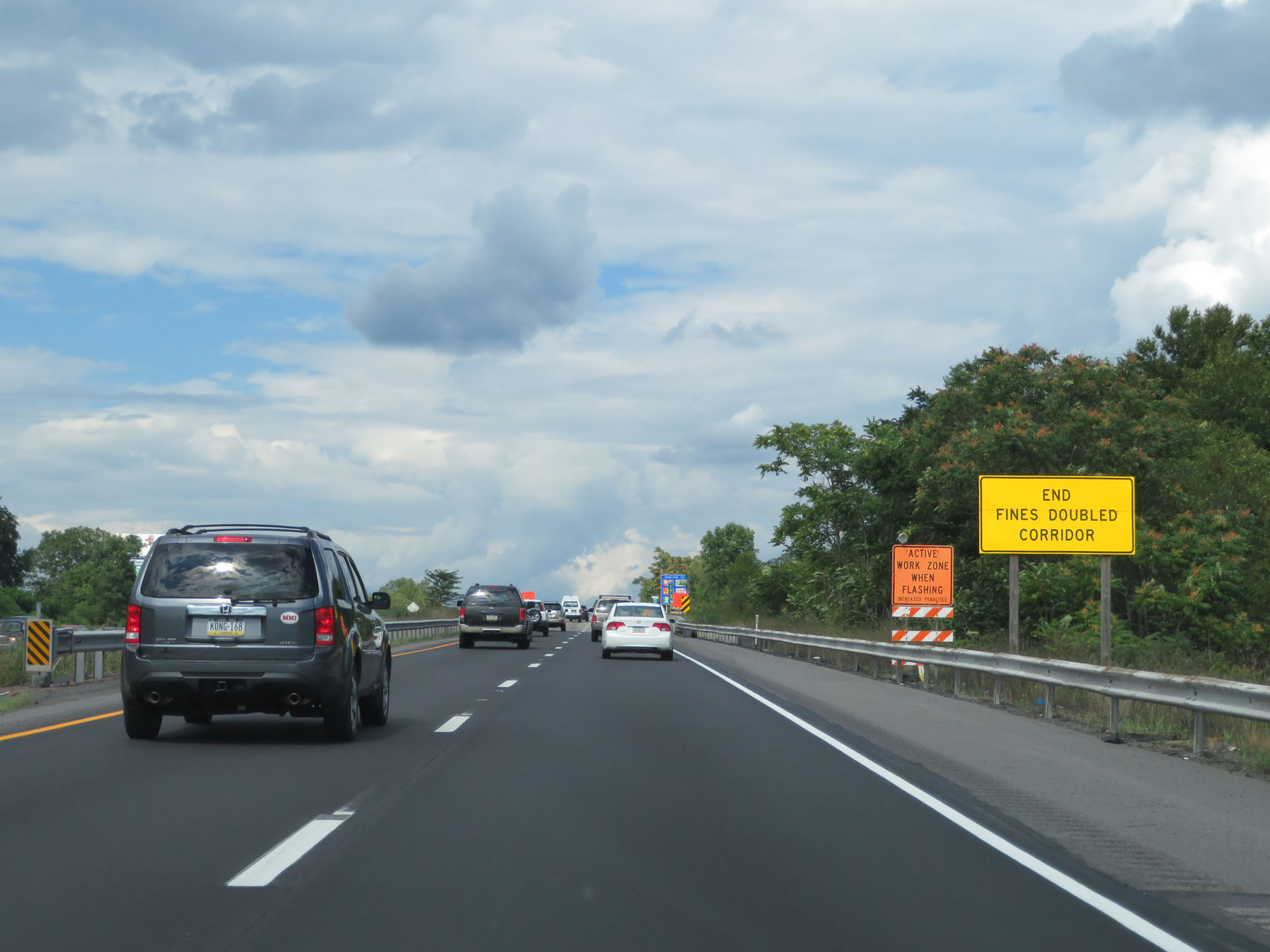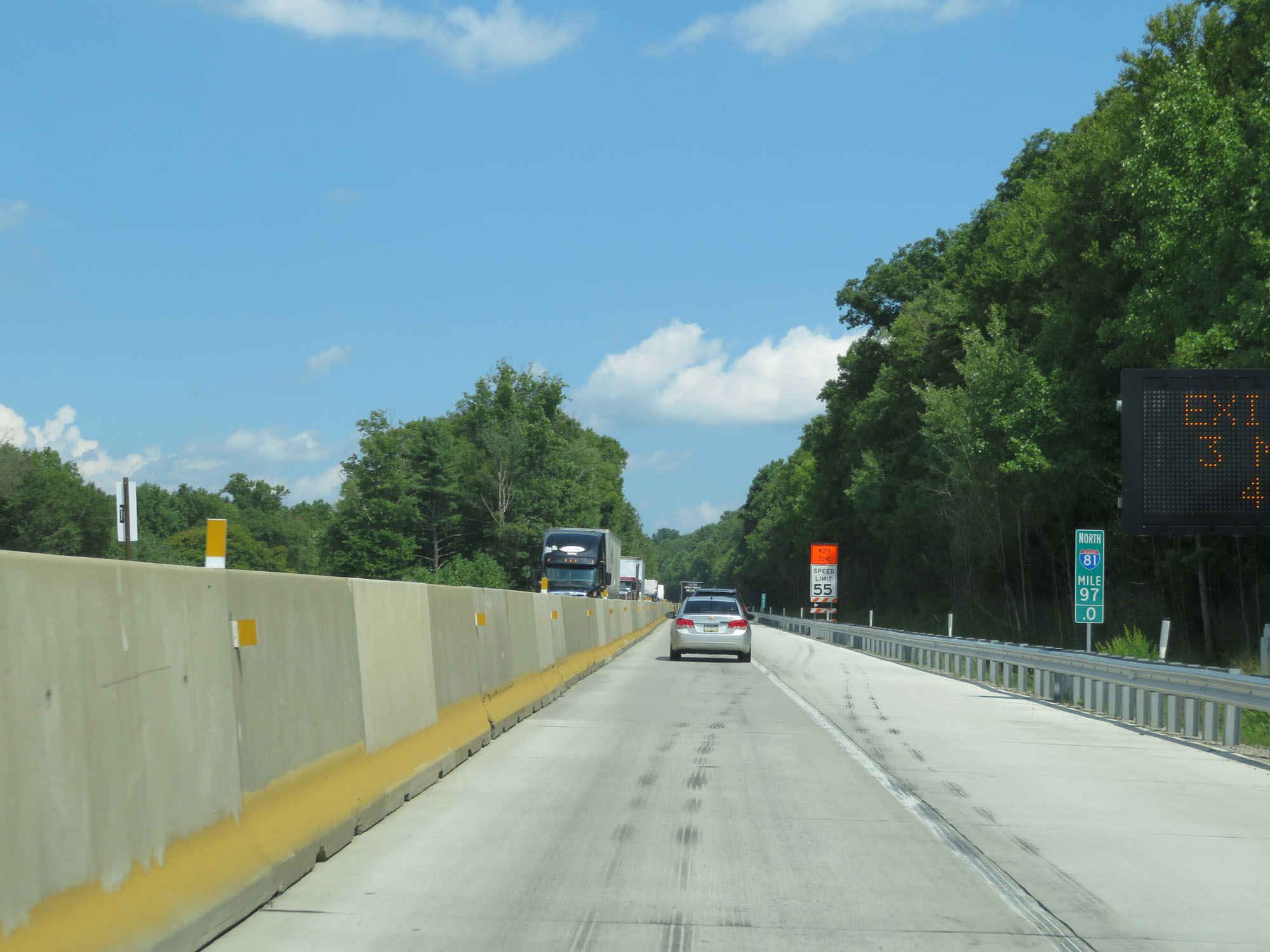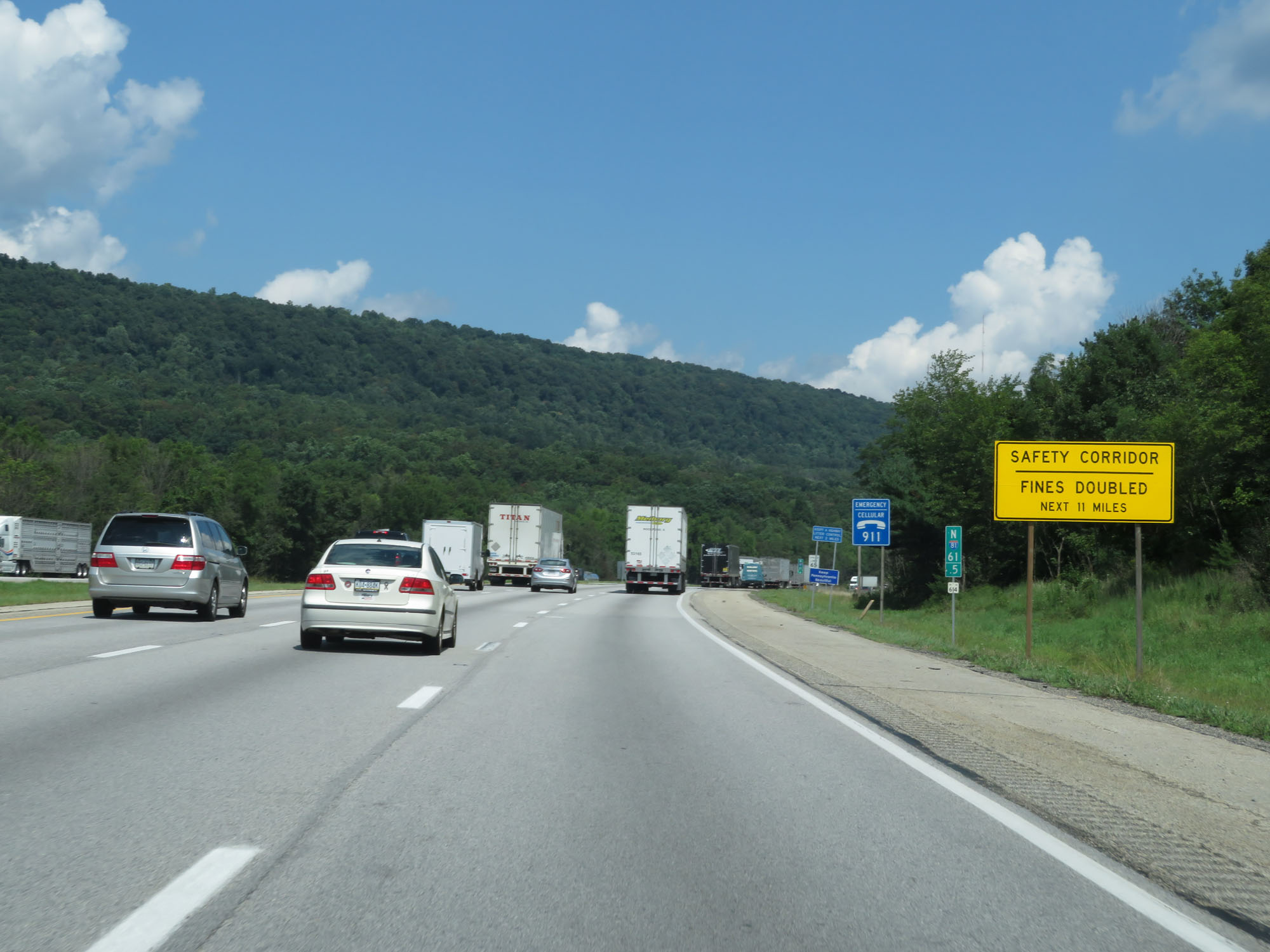 Approaching Exit 48, a 5-mile long Safety Corridor begins on Interstate 81 North. (Photo taken 8/19/16). |
