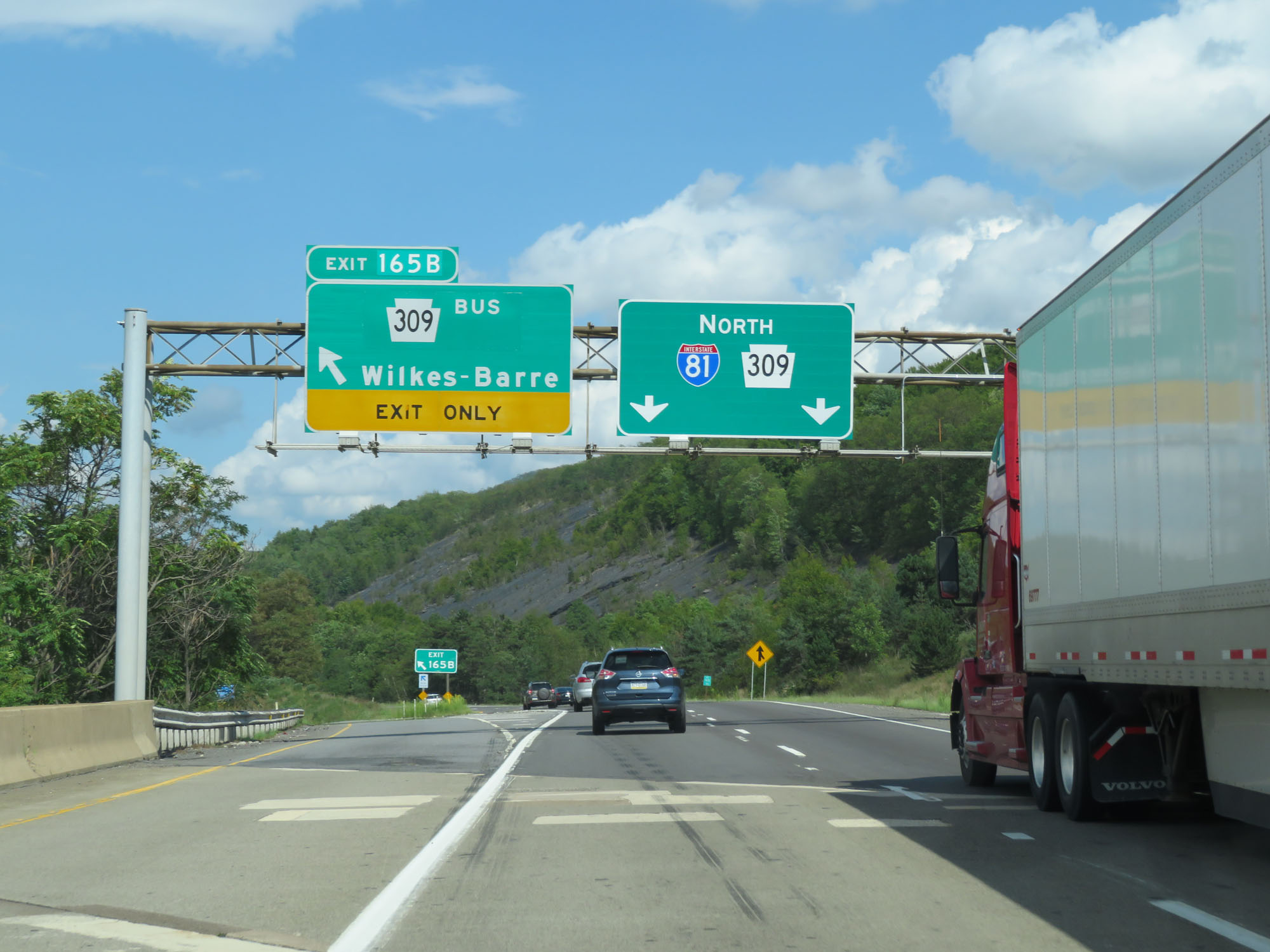 Interstate 81 North at Exit 44: PA 465 - Allen Road (Photo taken 8/19/16). |