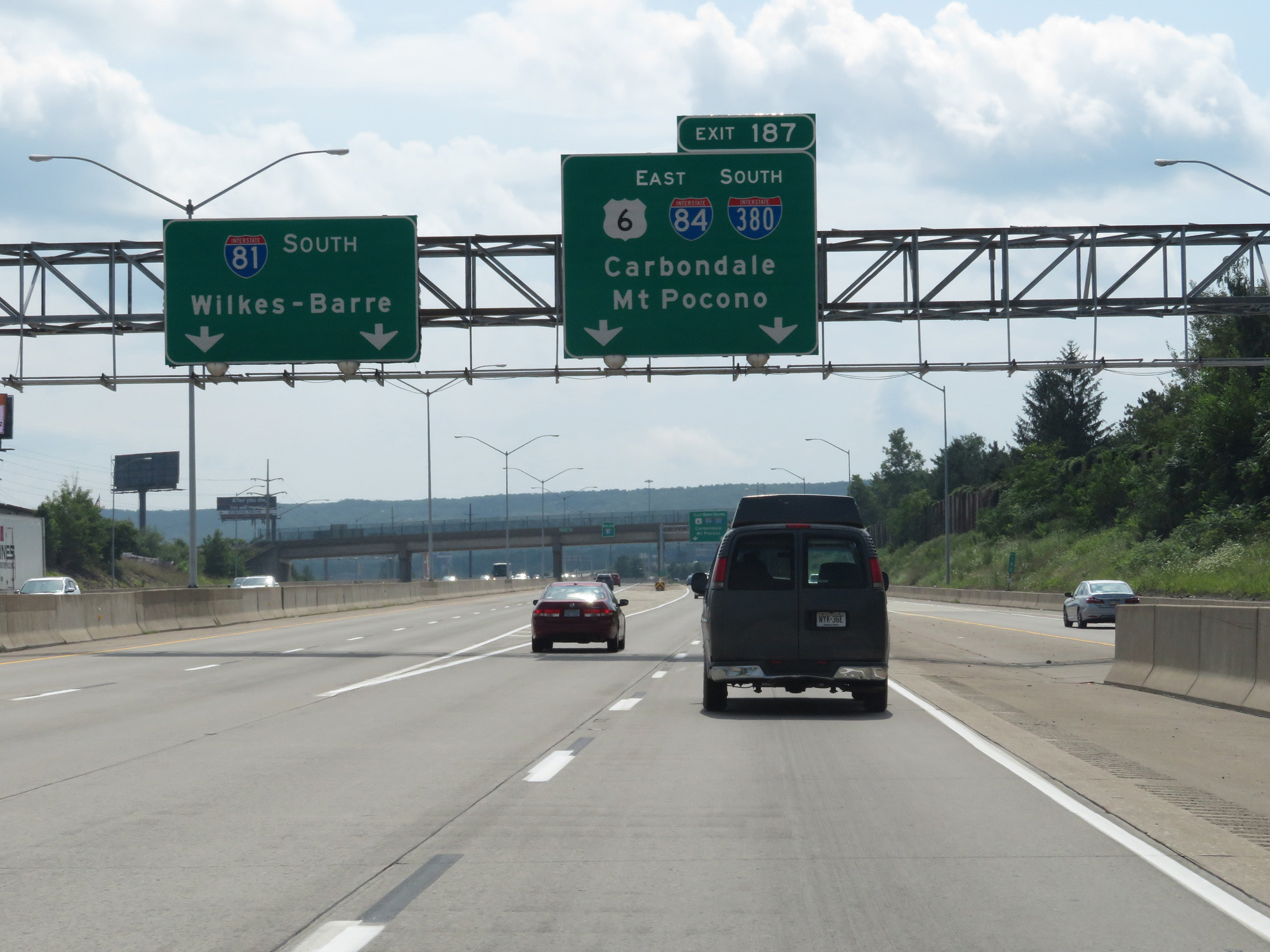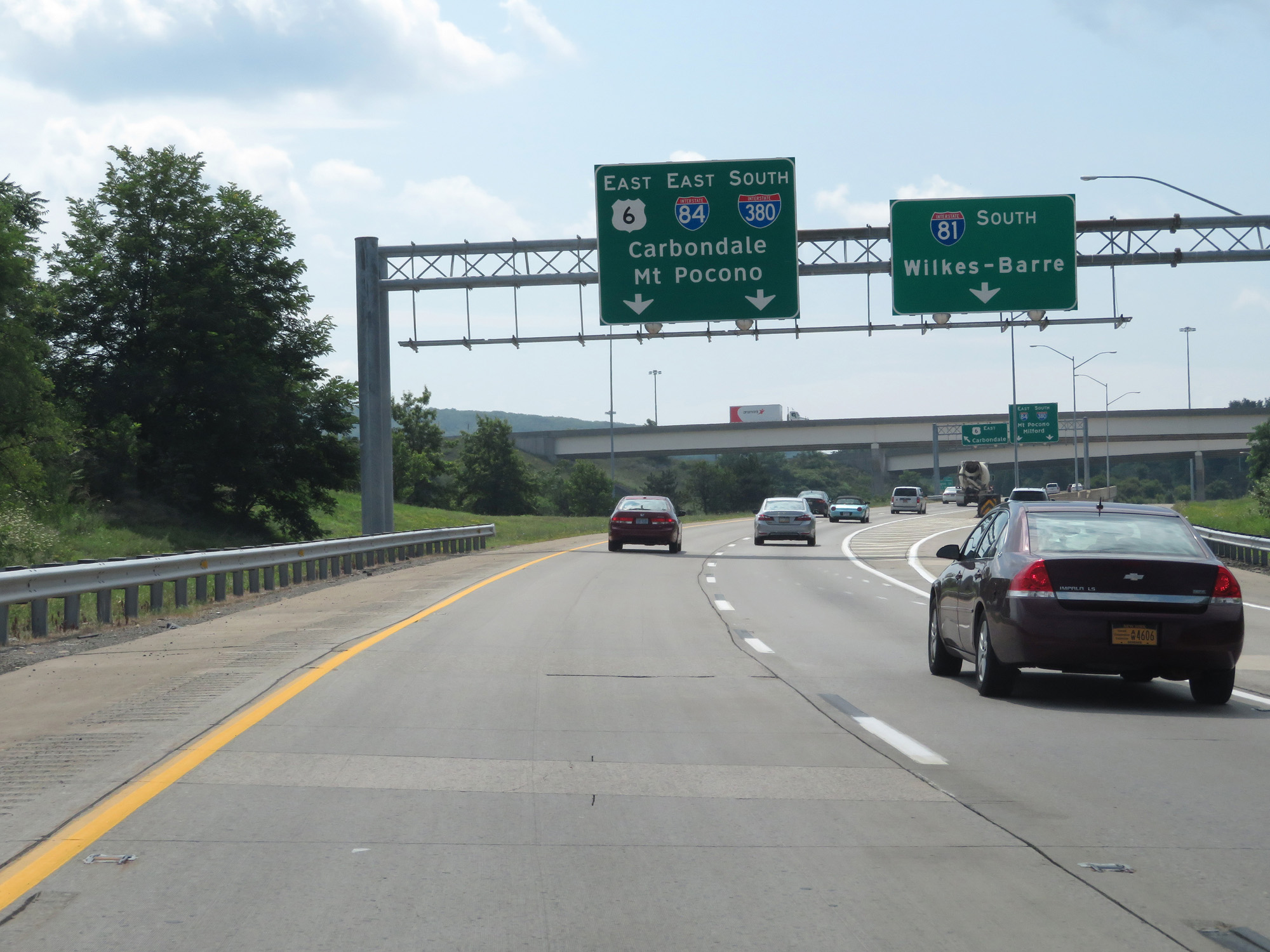 Interstate 84 East and Interstate 380 South begin at Exit 187 off of Interstate 81 South in Dunmore. (Photo taken 8/4/17). |