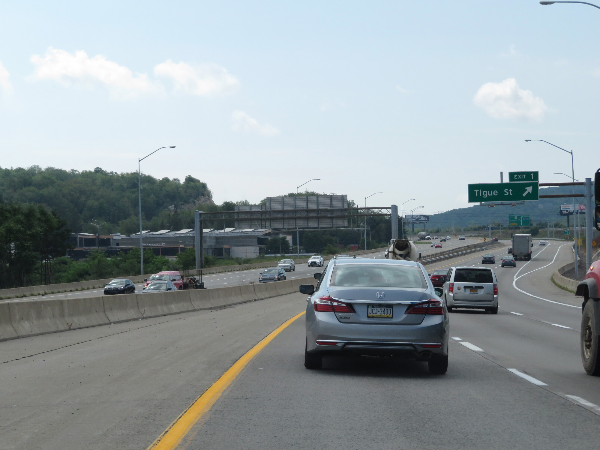 Interstate 84 East / Interstate 380 South at Exit 1: Tigue St (Photo taken 8/4/17). |