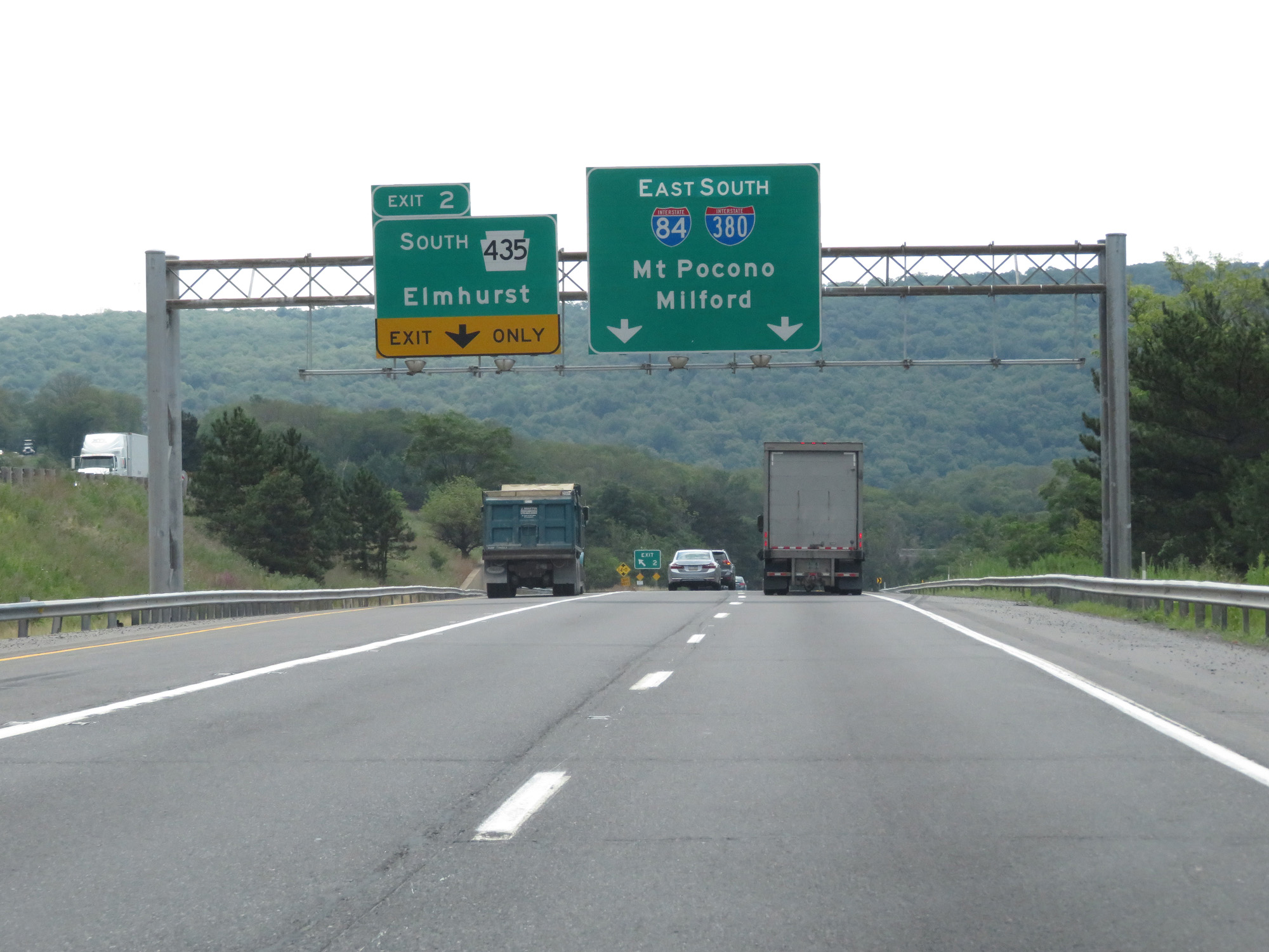 Interstate 84 East / Interstate 380 South at Exit 2: PA 435 South - Elmhurst (Photo taken 8/4/17). |