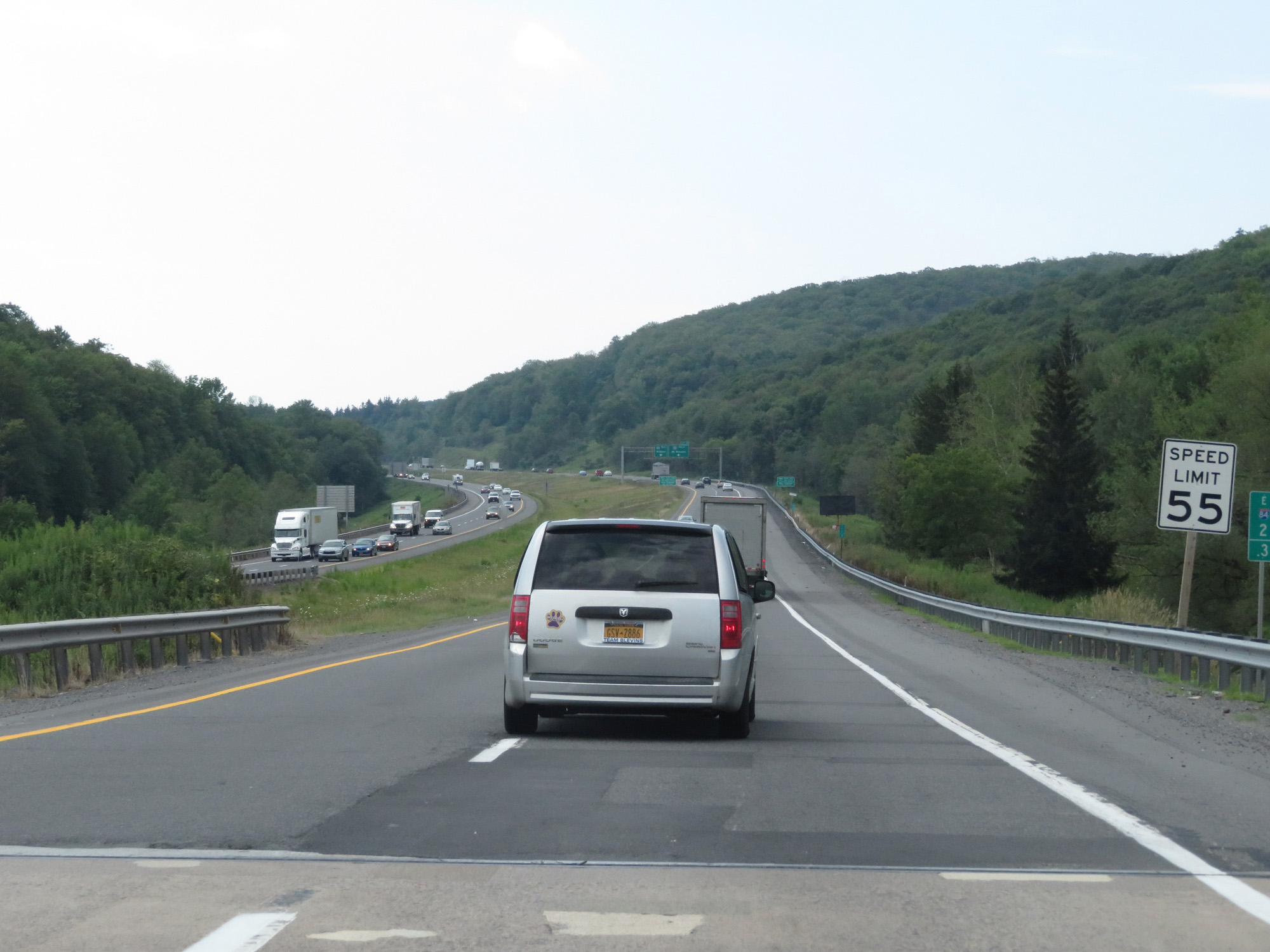 The speed limit on Interstate 84 East / Interstate 380 South starts out at 55 mph. (Photo taken 8/4/17). |