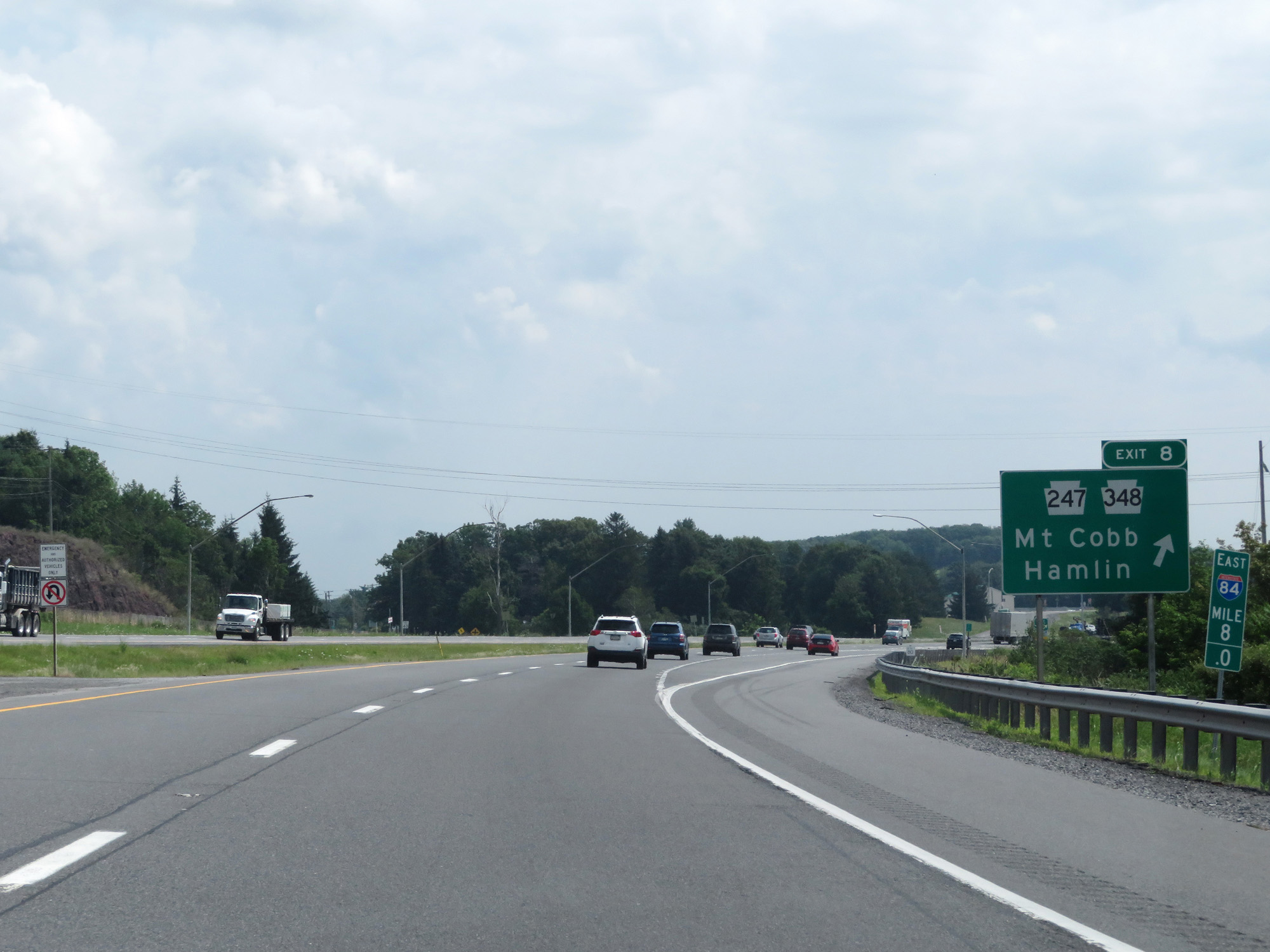 Interstate 84 East at Exit 8: PA 247 / PA 348 - Mt Cobb / Hamlin (Photo taken 8/4/17). |