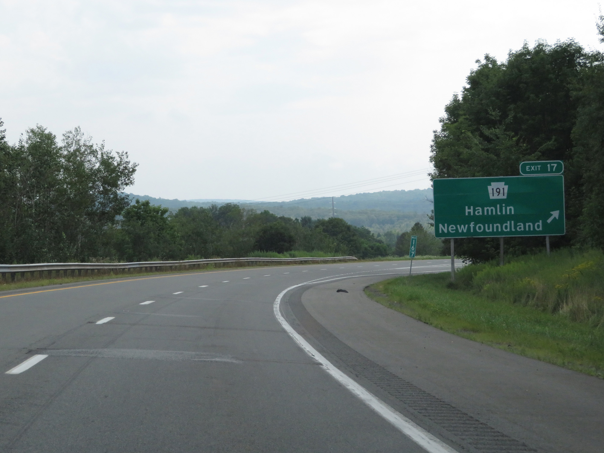Interstate 84 East at Exit 17: PA 191 - Hamlin / Newfoundland (Photo taken 8/4/17). |