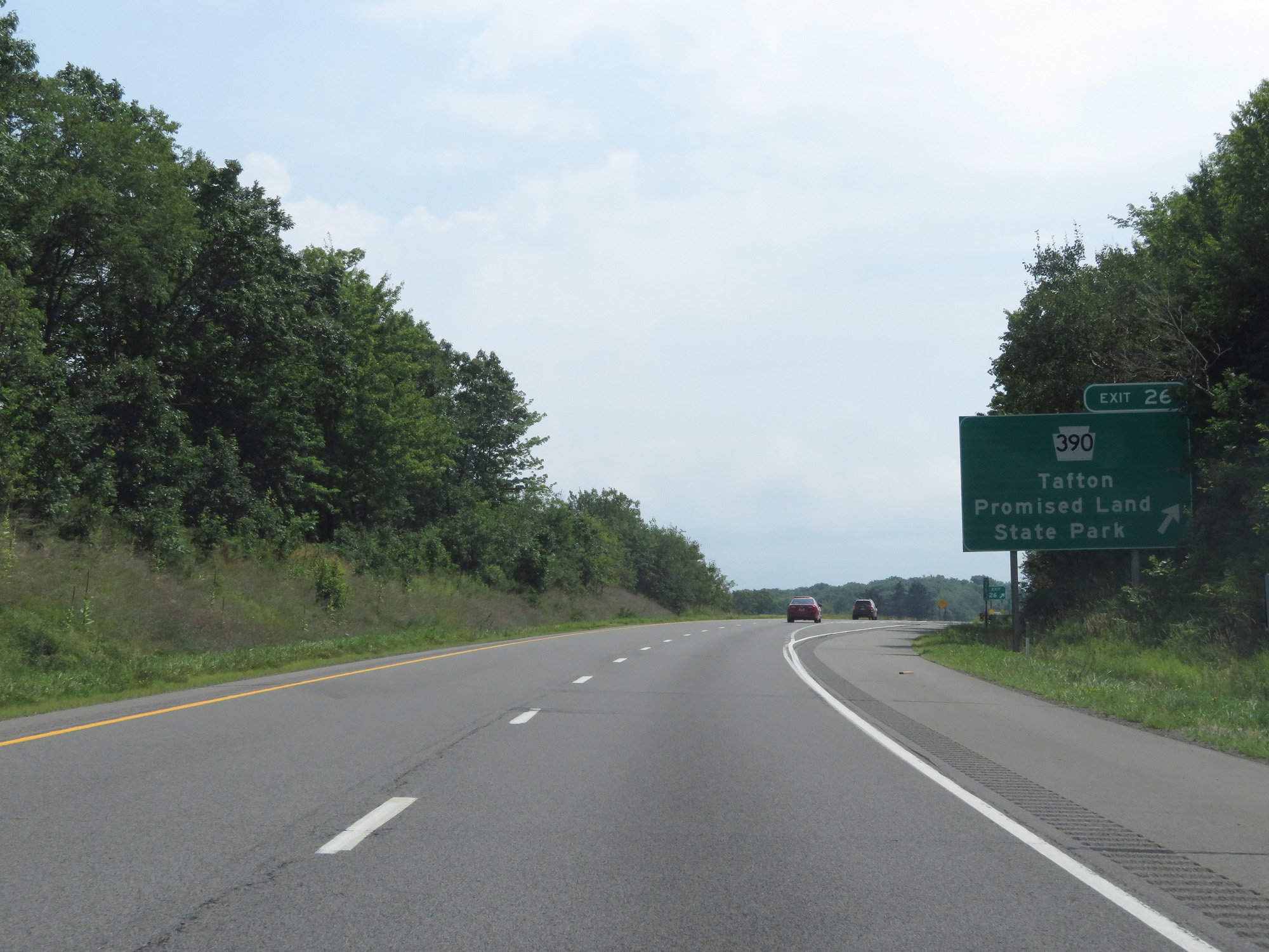 Interstate 84 East at Exit 26: PA 390 - Tafton / Promised Land State Park (Photo taken 8/4/17). |