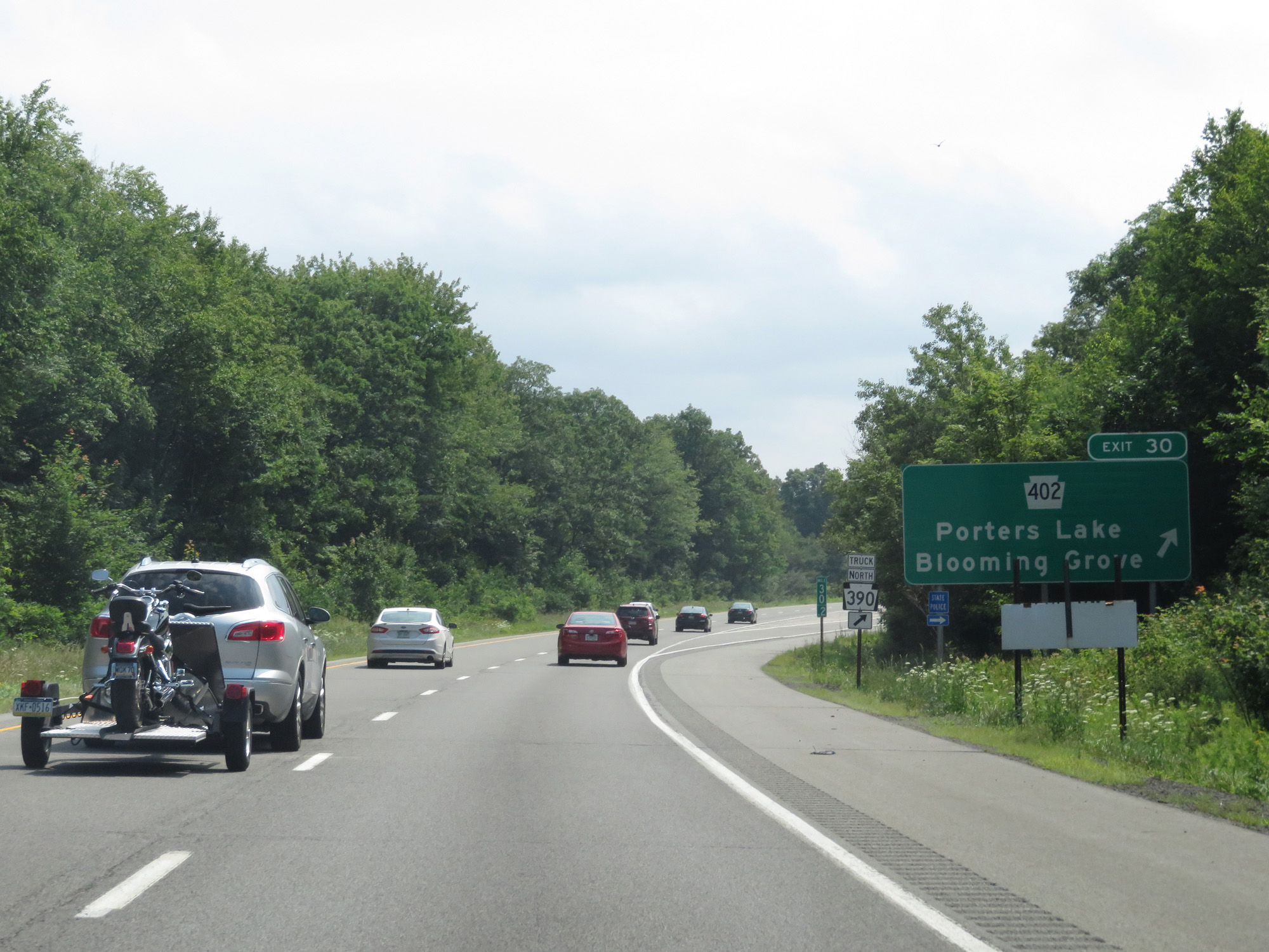 Interstate 84 East at Exit 30: PA 402 - Porters Lake / Blooming Grove (Photo taken 8/4/17). |