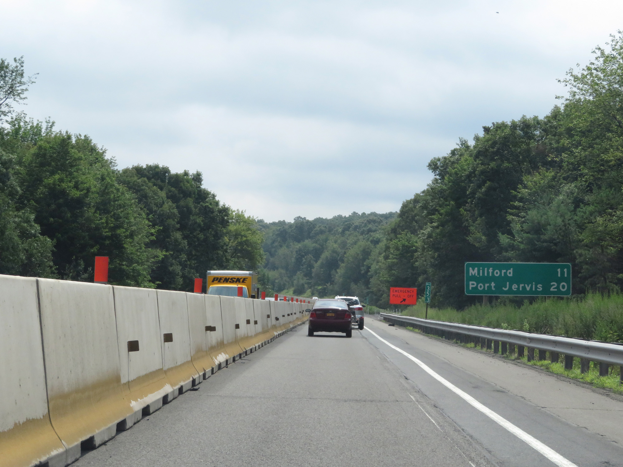 Mileage sign at mile marker 35.3. It's 11 miles to Milford and 20 miles to Port Jervis. (Photo taken 8/4/17). |