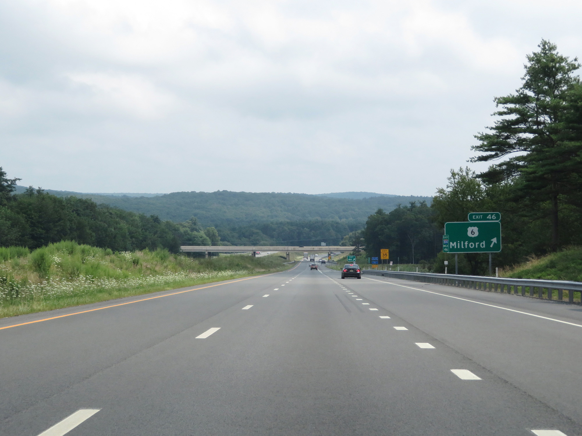 Interstate 84 East at Exit 46: US 6 - Milford (Photo taken 8/4/17). |