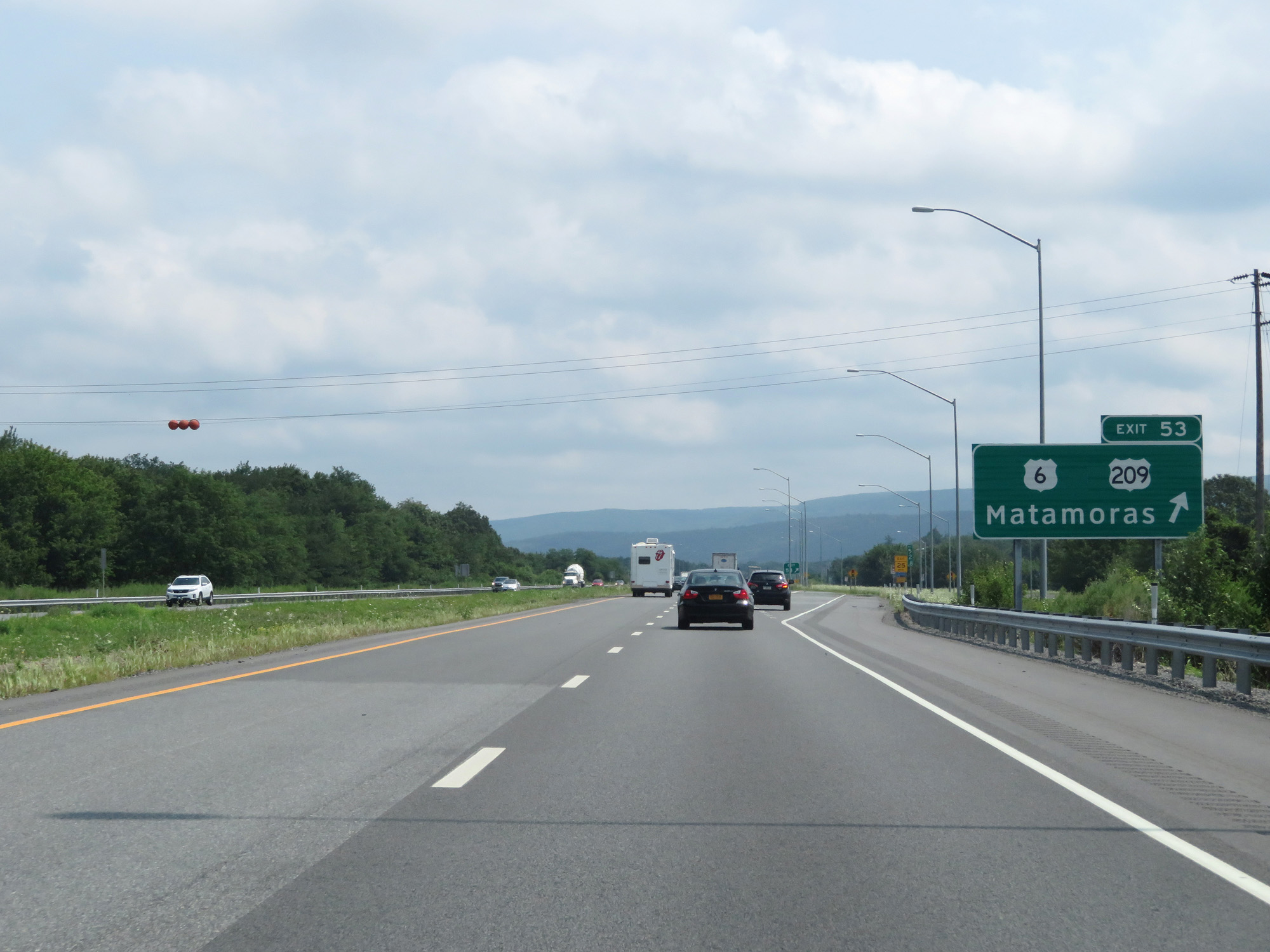 Interstate 84 East at Exit 53: US 6 / US 209 - Matamoras (Photo taken 8/4/17). |