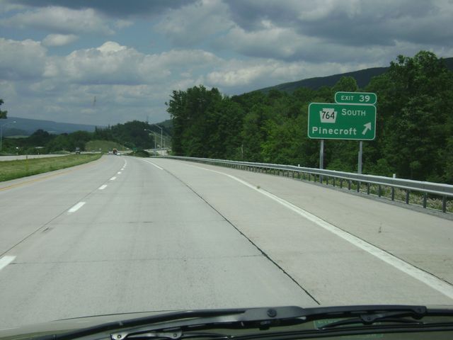 Interstate 99 North at Exit 39: PA 764 South - Pinecroft (Photo taken 6/10/10). |