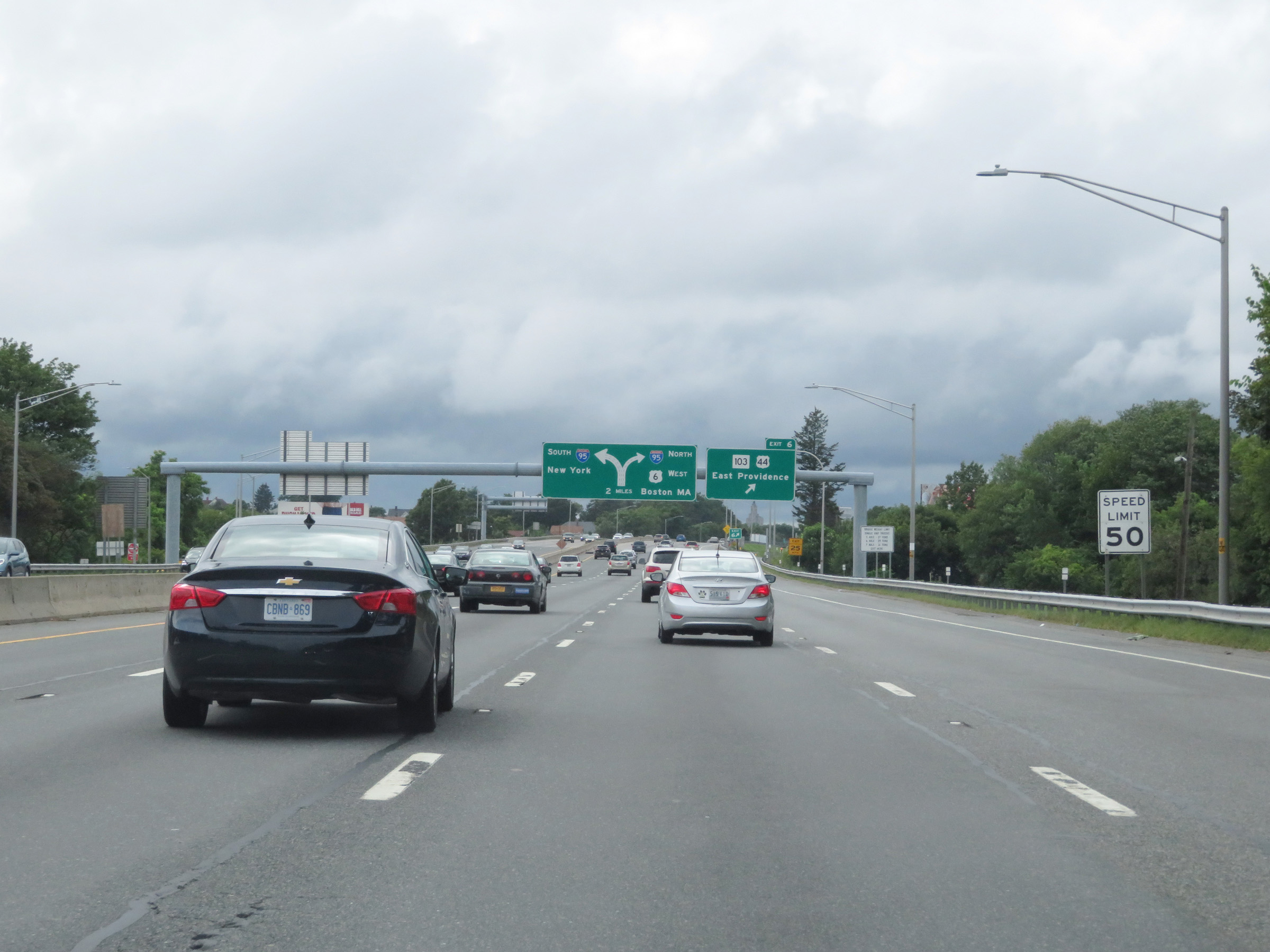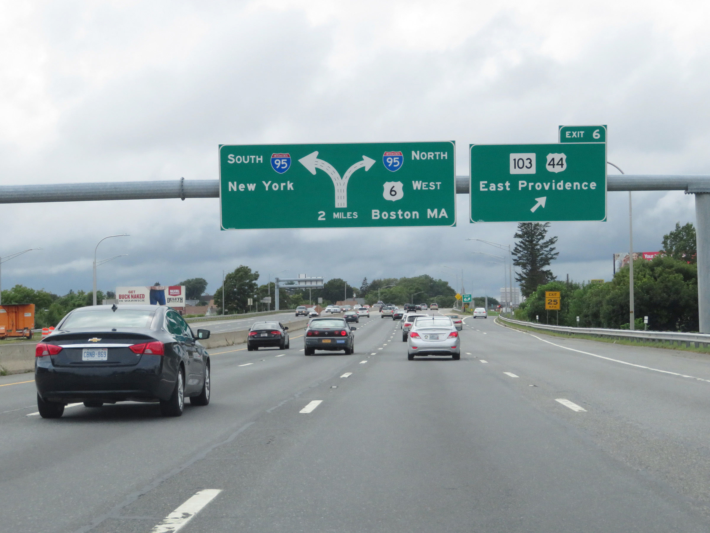 Interstate 195 West at Exit 6: US 44 / RI 103 - East Providence (Photo taken 8/5/17). |