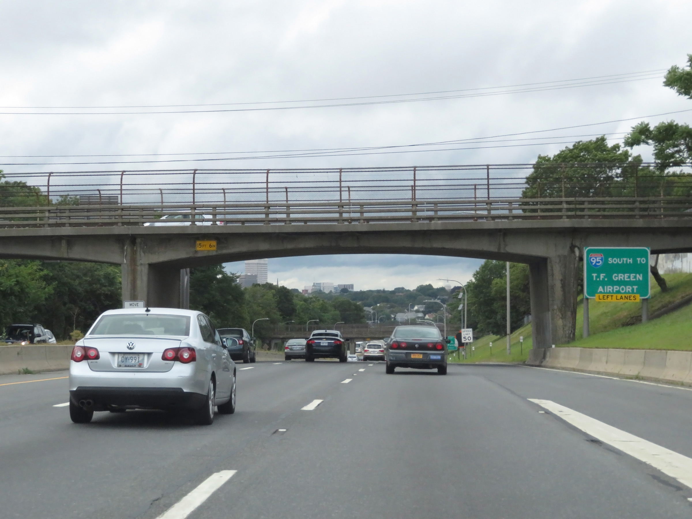 Traffic to T.F. Green Airport should keep left and follow Interstate 95 South. (Photo taken 8/5/17). |