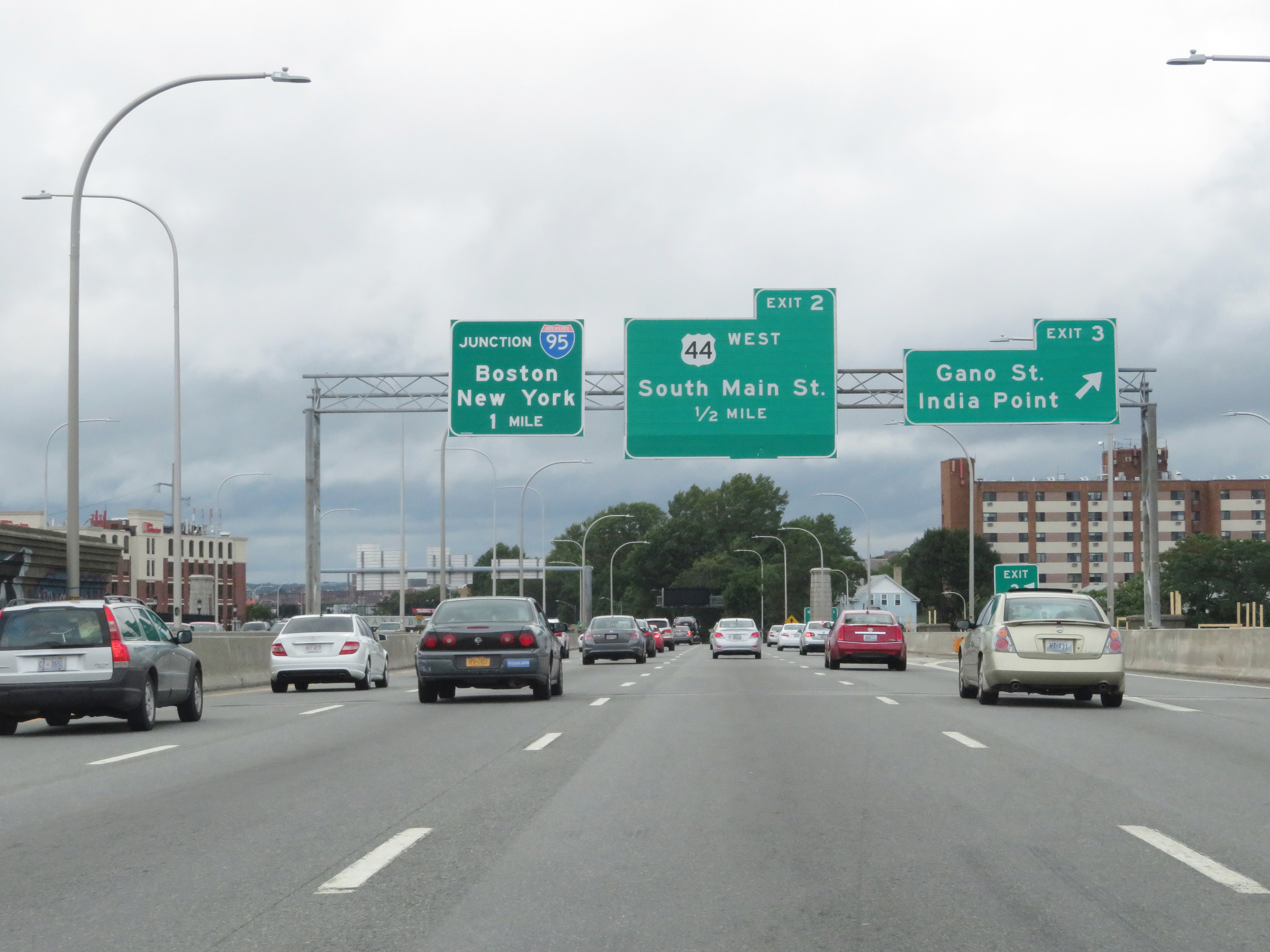 Interstate 195 West at Exit 3: Gano St / India Point (Photo taken 8/5/17). |