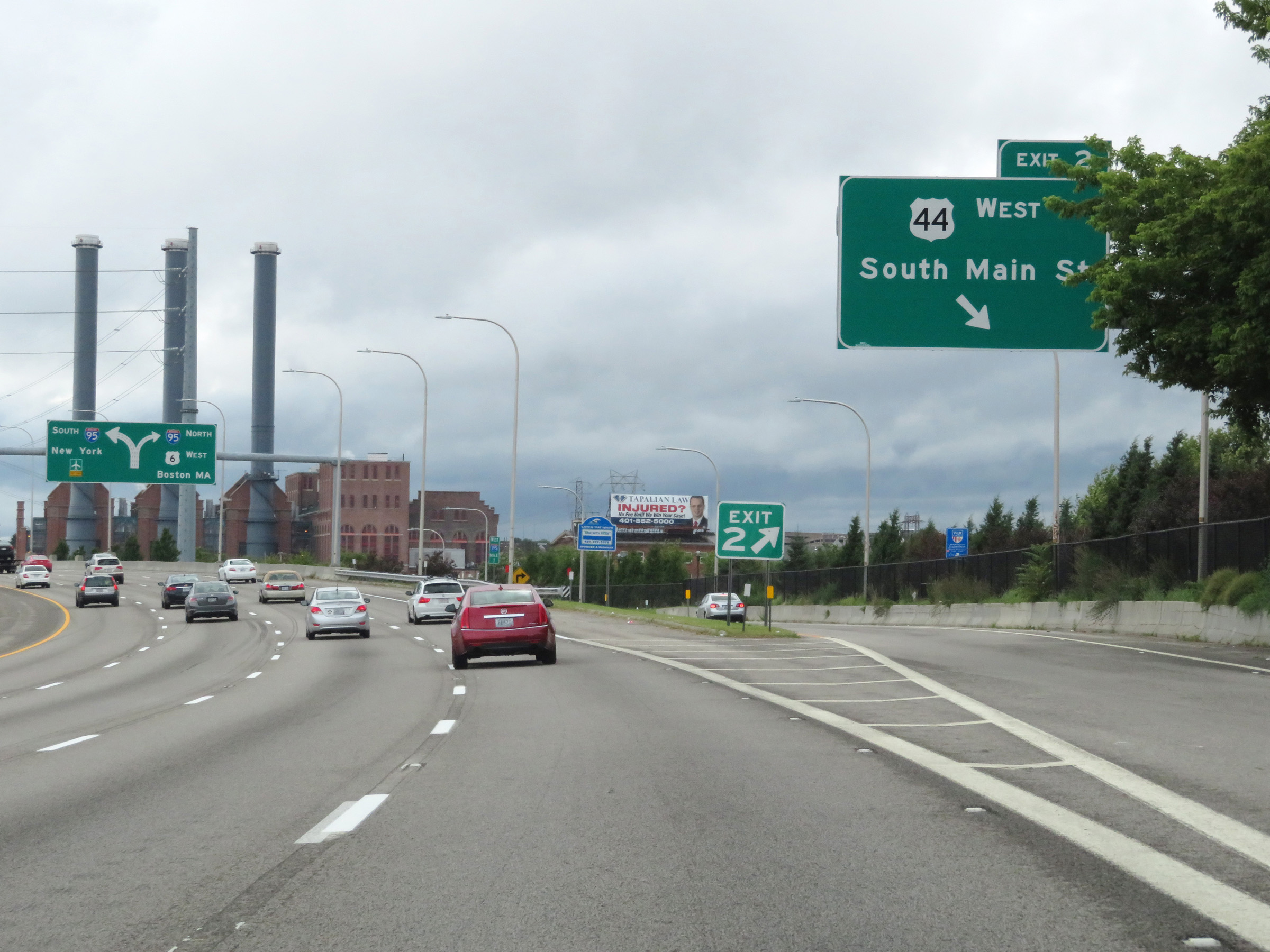 Interstate 195 West at Exit 2: US 44 West - South Main St (Photo taken 8/5/17). |