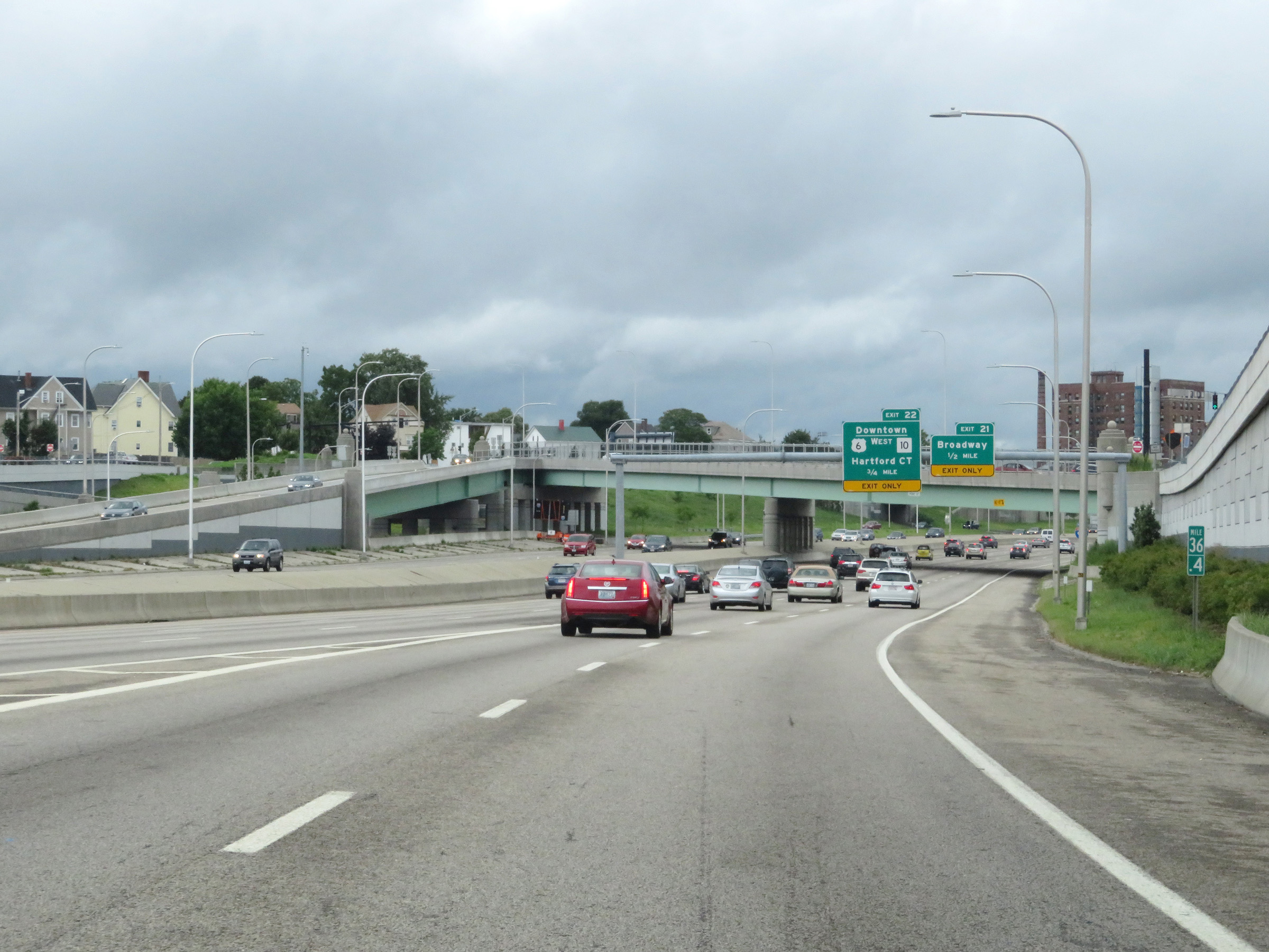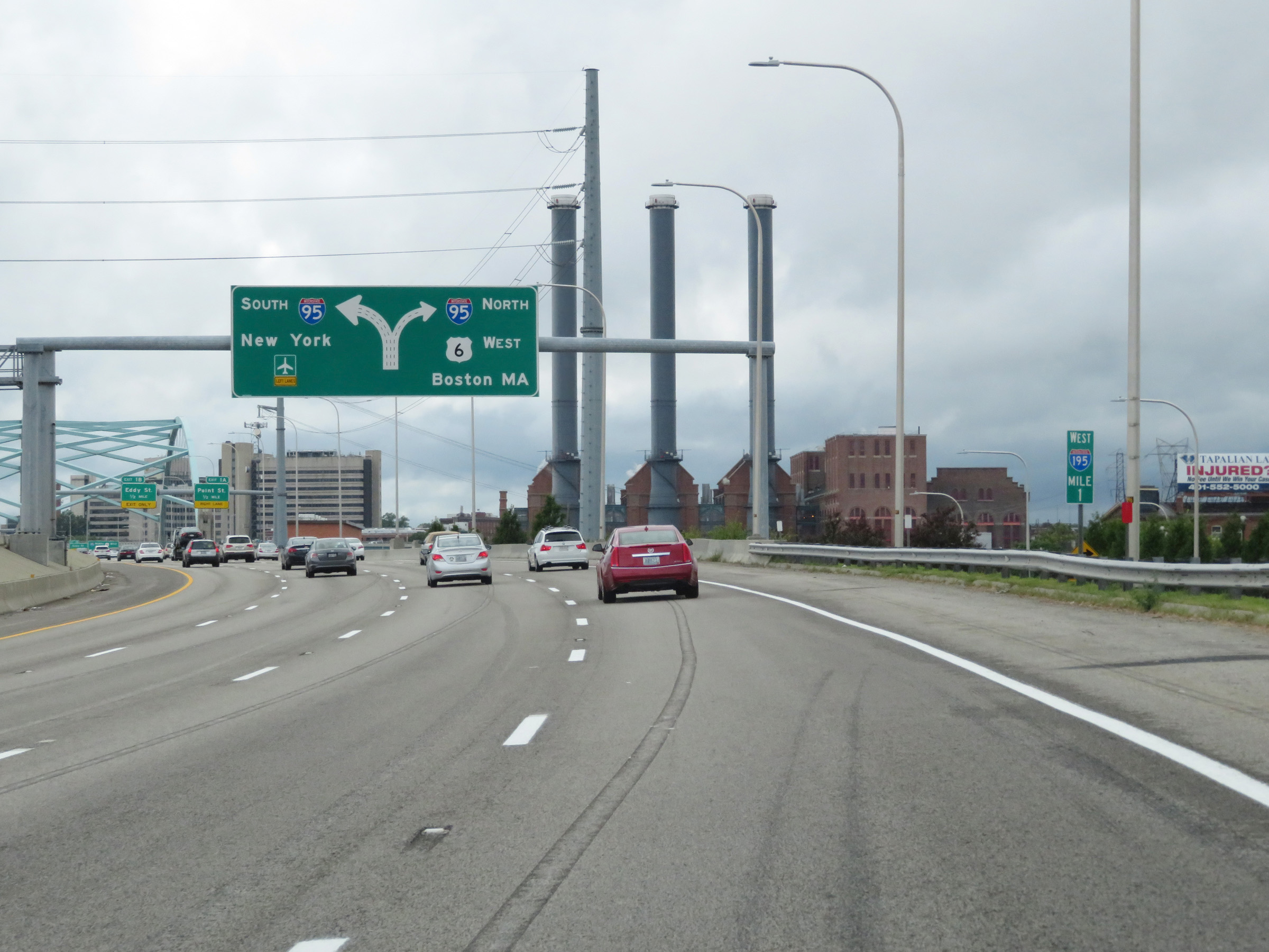 Interstate 195 West as it reaches its western terminus in Providence on the west side of the Providence River Bridge at the junction of Interstate 95. (Photo taken 8/5/17). |