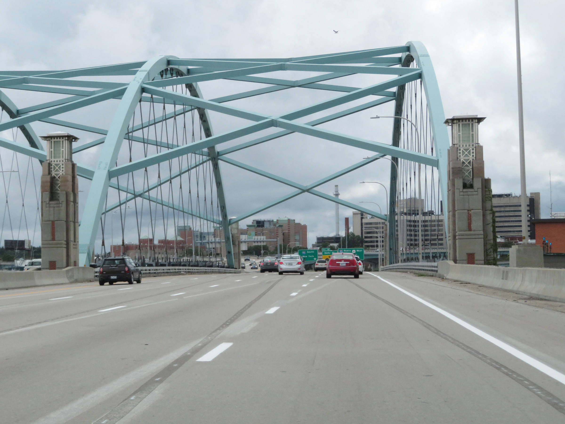 View on Interstate 195 West as it prepares to cross the Providence River Bridge. (Photo taken 8/5/17). |