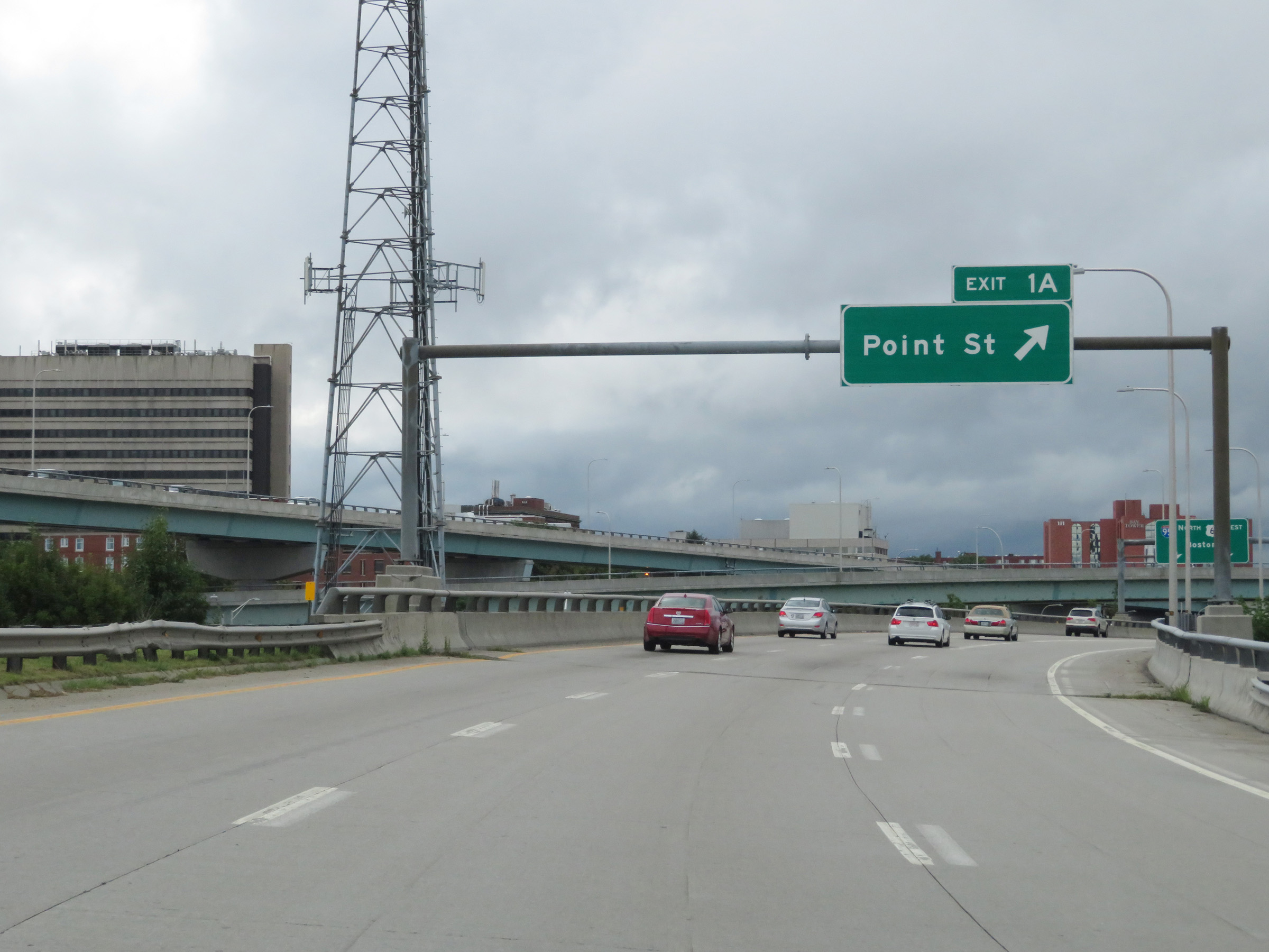 Interstate 195 West at Exit 1A: Point St (Photo taken 8/5/17). |