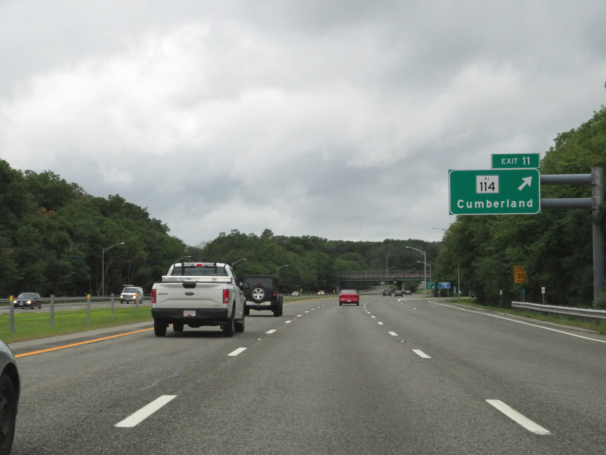 Interstate 295 South at Exit 11: RI 114 - Cumberland (Photo taken 8/5/17).