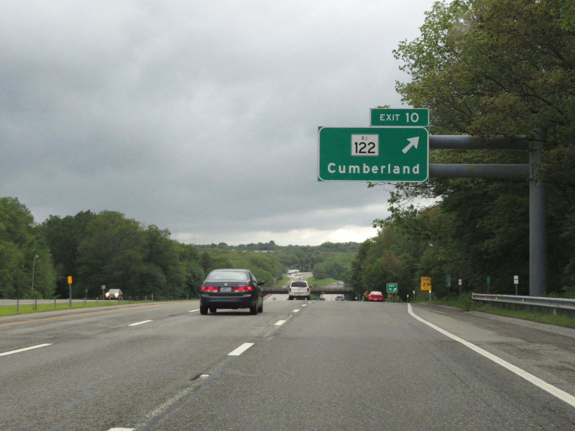 Interstate 295 South at Exit 10: RI 122 - Cumberland (Photo taken 8/5/17).