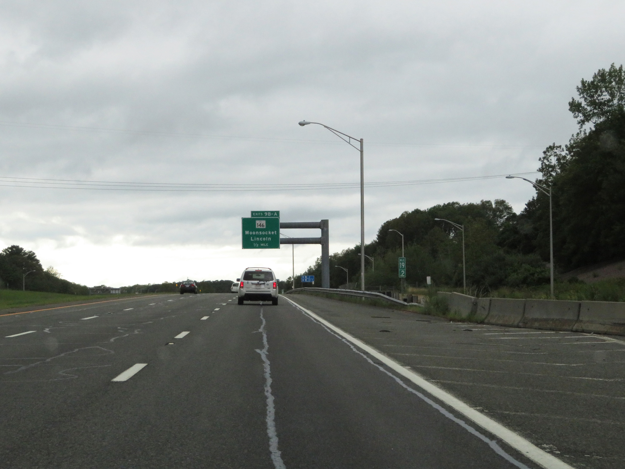 Interstate 295 South at Exit 9B: RI 146 North - Woonsocket (Photo taken 8/5/17).