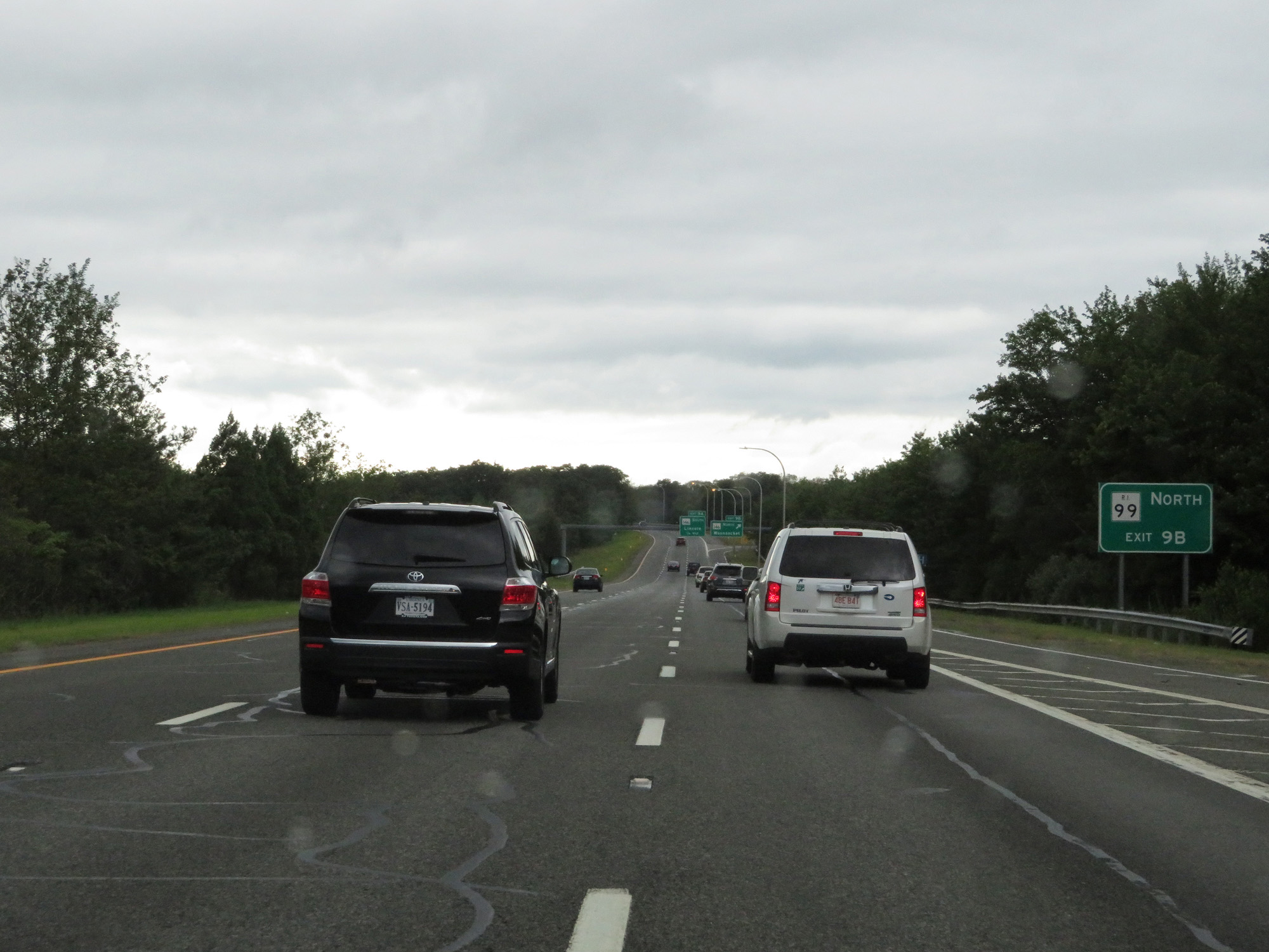 Take Exit 9B to RI 99 North. (Photo taken 8/5/17).