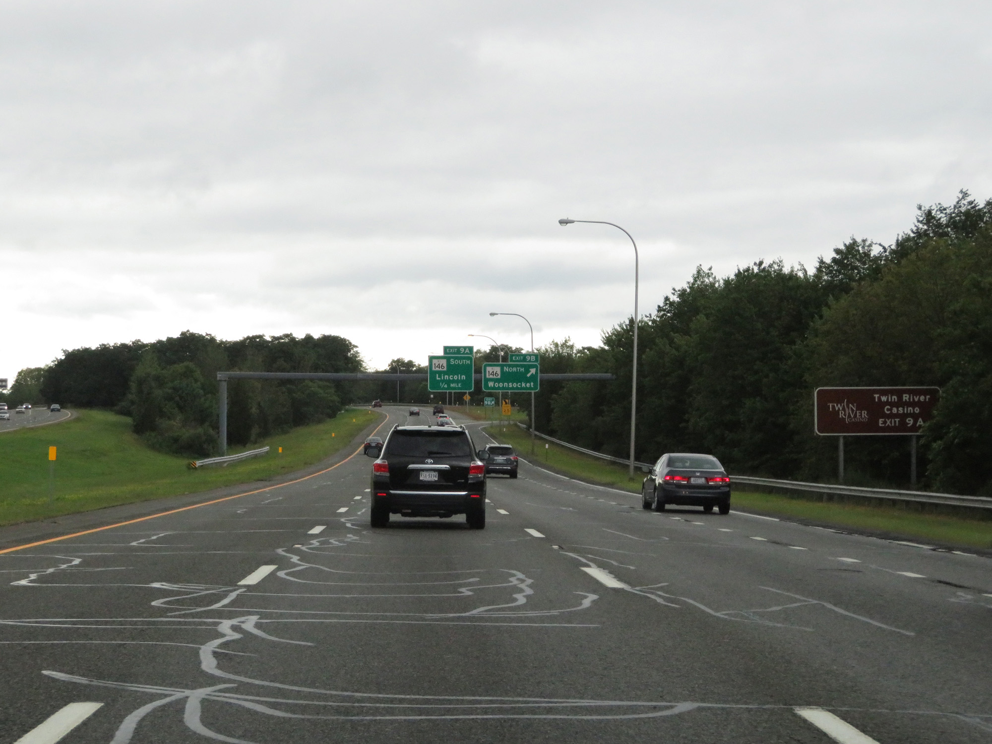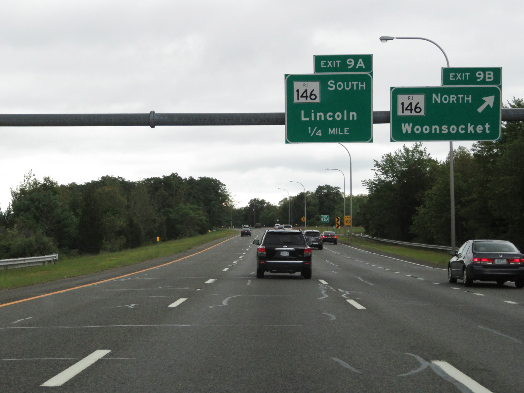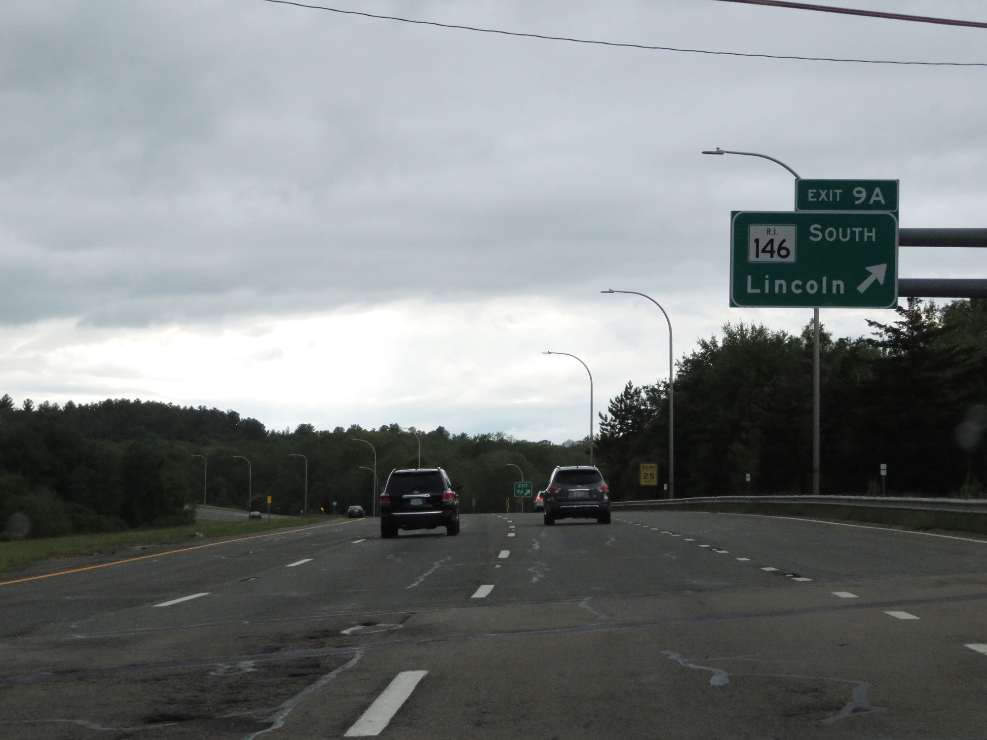 Interstate 295 South at Exit 9A: RI 146 South - Lincoln (Photo taken 8/5/17).
